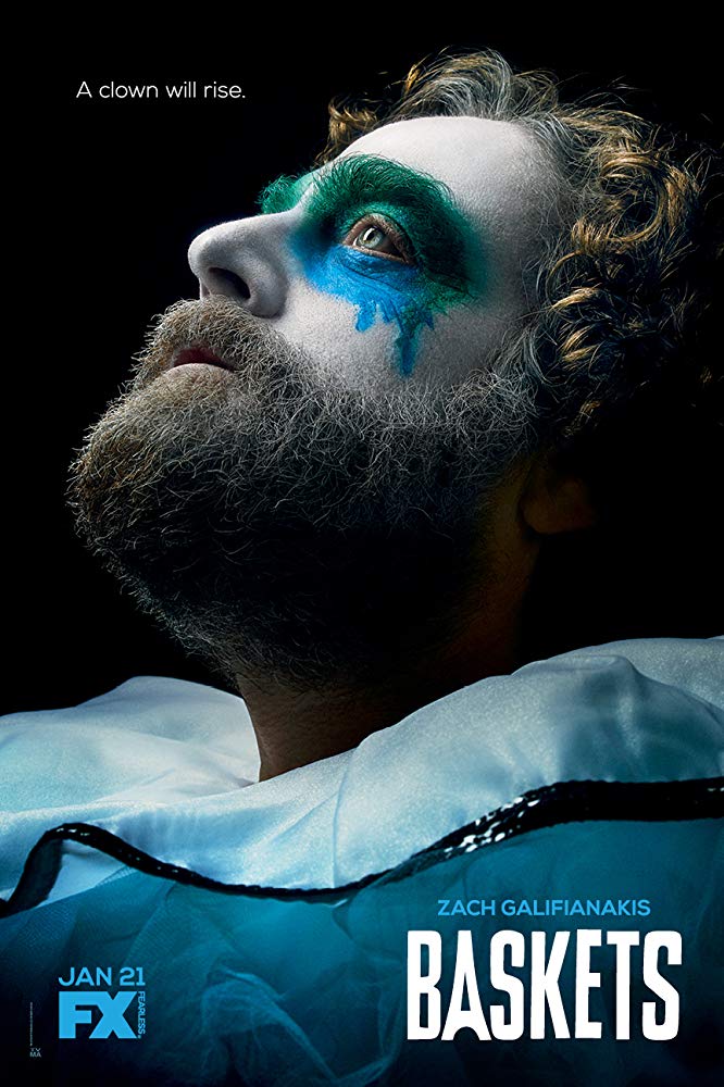 „Баскетс“ (Baskets на FX). Чип (Зак Галифанакис със своята най-бъстъркийтъновска физиономия) мечтае да е френски клоун, но е смешник на арена за родео в калифорнийски градец. Неговият брат близнак Дейл е уседнал и „успял“, но скрито му завижда. Майка им, страстна почитателка на супермаркетите и на Роналд Рейгън, е изиграна със смайваща палитра от меки меланхолии от комика Луи Андерсън. Чип за кратко е женен за пресметлива френска красавица, но съдбата явно му е отредила за спътница кротката Марта, която е редом с него през всичките 4 сезона по 10 епизода от половин час…