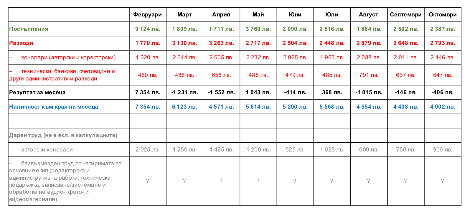 За тези 9 месеца публикувахме над 300 статии, 6 видео- и 38 аудиоматериала, от които 8 епизода на подкаста ни „Паралели и меридиани“. И нито един копипейст материал – няма препечатани Facebook статуси, публикации от блогове и прессъобщения, нито преведени статии на чуждестранни медии. Липсват също рекламни банери и платени репортажи.