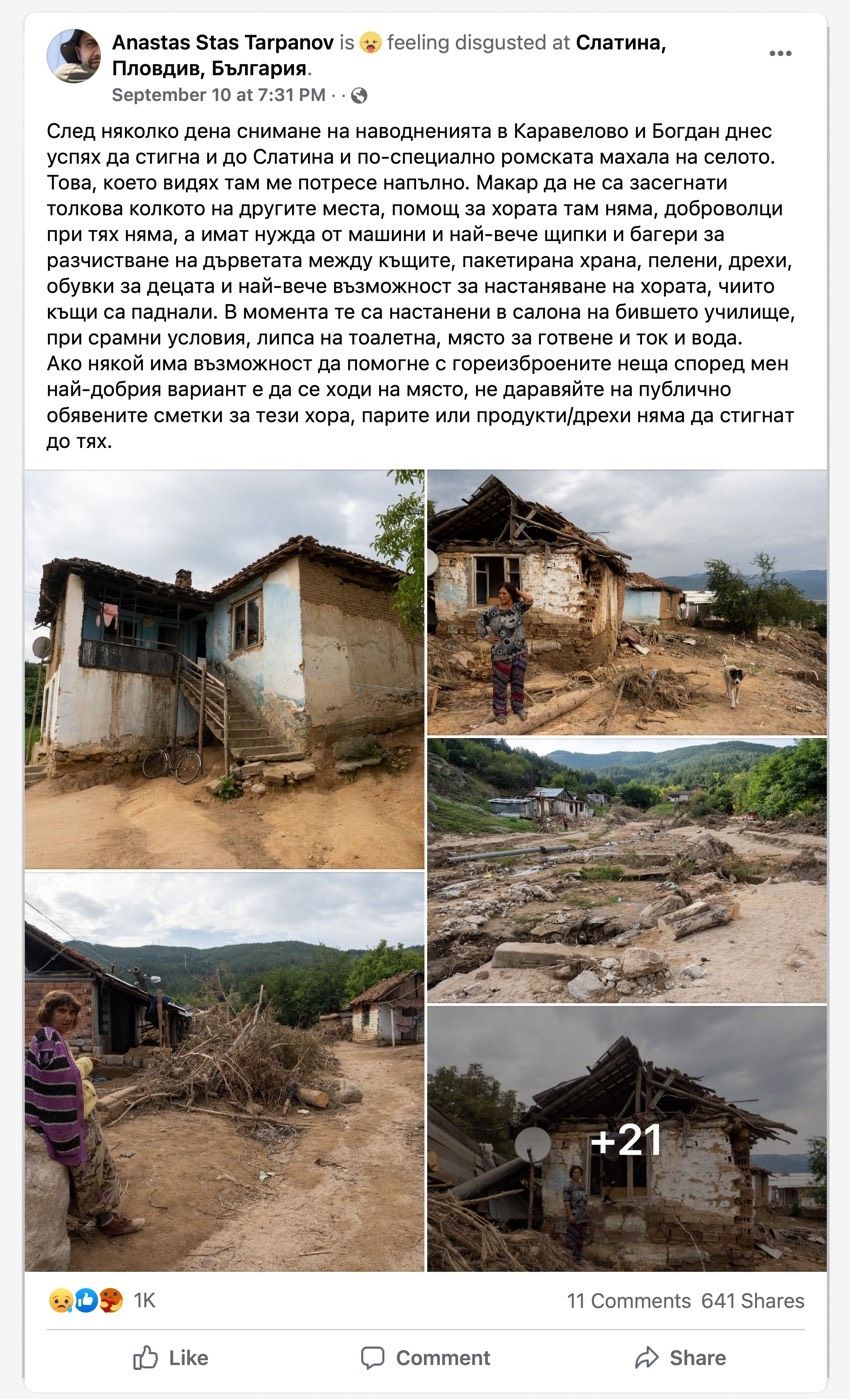 След като публикувах във Facebook снимките оттам, много хора започнаха да ми пишат. Искаха да ми пращат пари на личната сметка, за да купувам храна, материали за децата, дрехи, искаха да пращат дрехи на моя адрес. Оказах се неподготвен в тази ситуация, не очаквах такова нещо. И се наложи да направим една координационна група с други хора, които също помагат, за да можем да съгласуваме действията си на място и да има специален пункт, откъдето да минават нещата, които да стигат до местните. Утре ще пристигна на терен и ще има работа на място. Пак отивам в село Слатина.
