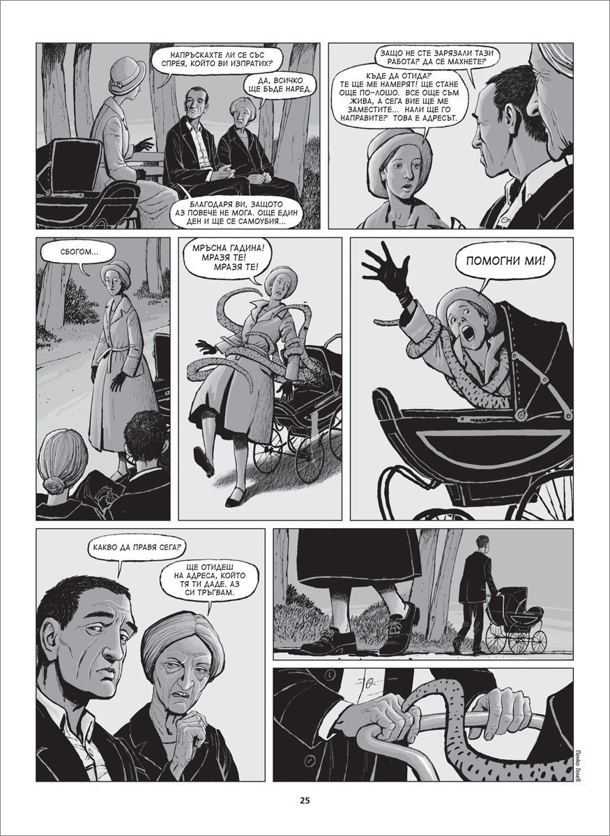 На едно място във втория „Аракел“ гастролира котаракът Гергин от „Илийчо и Август“, на друго – комикът Роберто Бенини в ролята на адвоката Бранев. От друга страна, страховитата с. 47 е като „икона“ на домашното насилие; карта таро, която обявява края на краищата… Какво е отношението ви към хумора, мистификацията и играта и как виждате този комикс – като място за удоволствие или място за размишление?