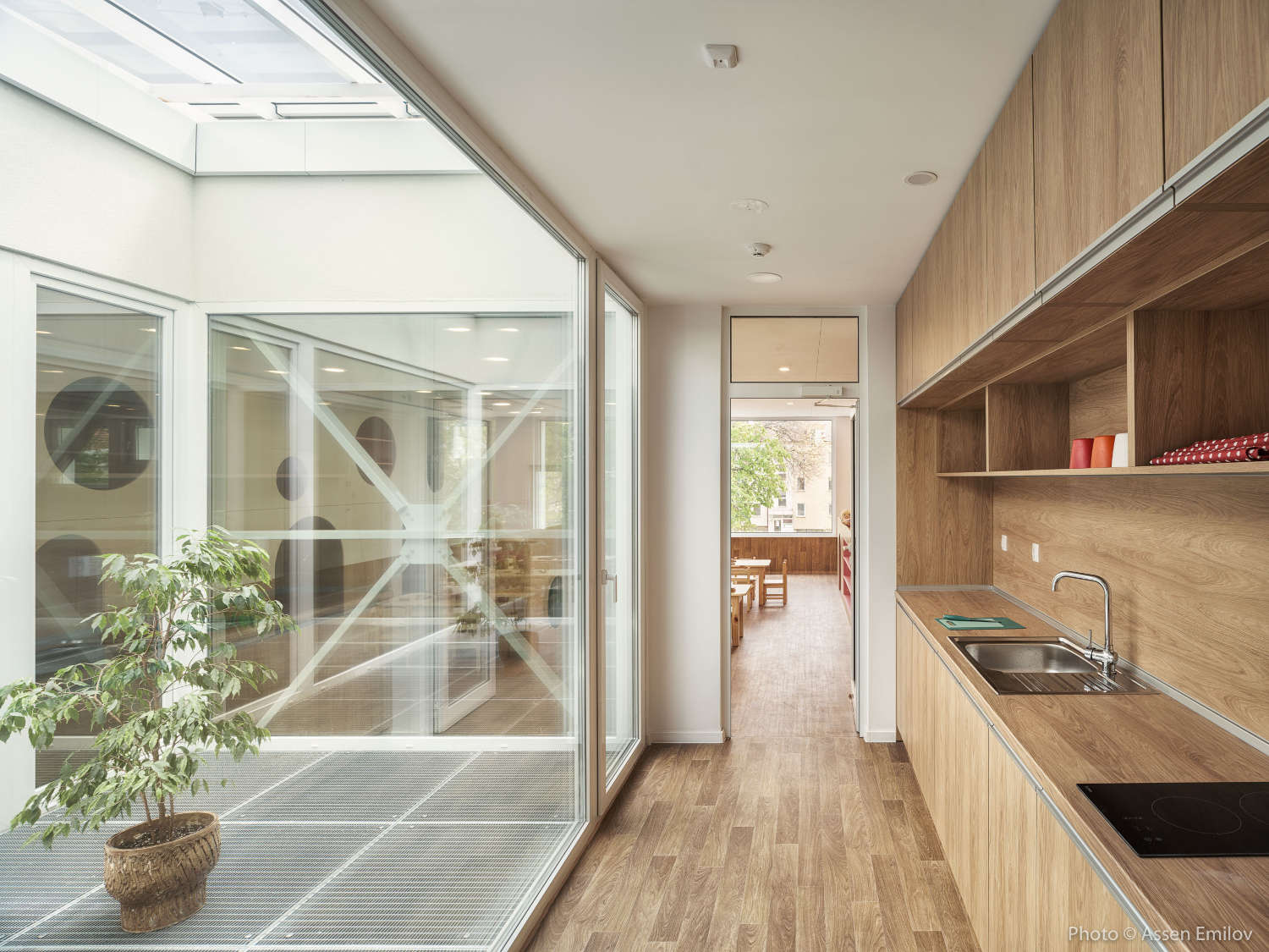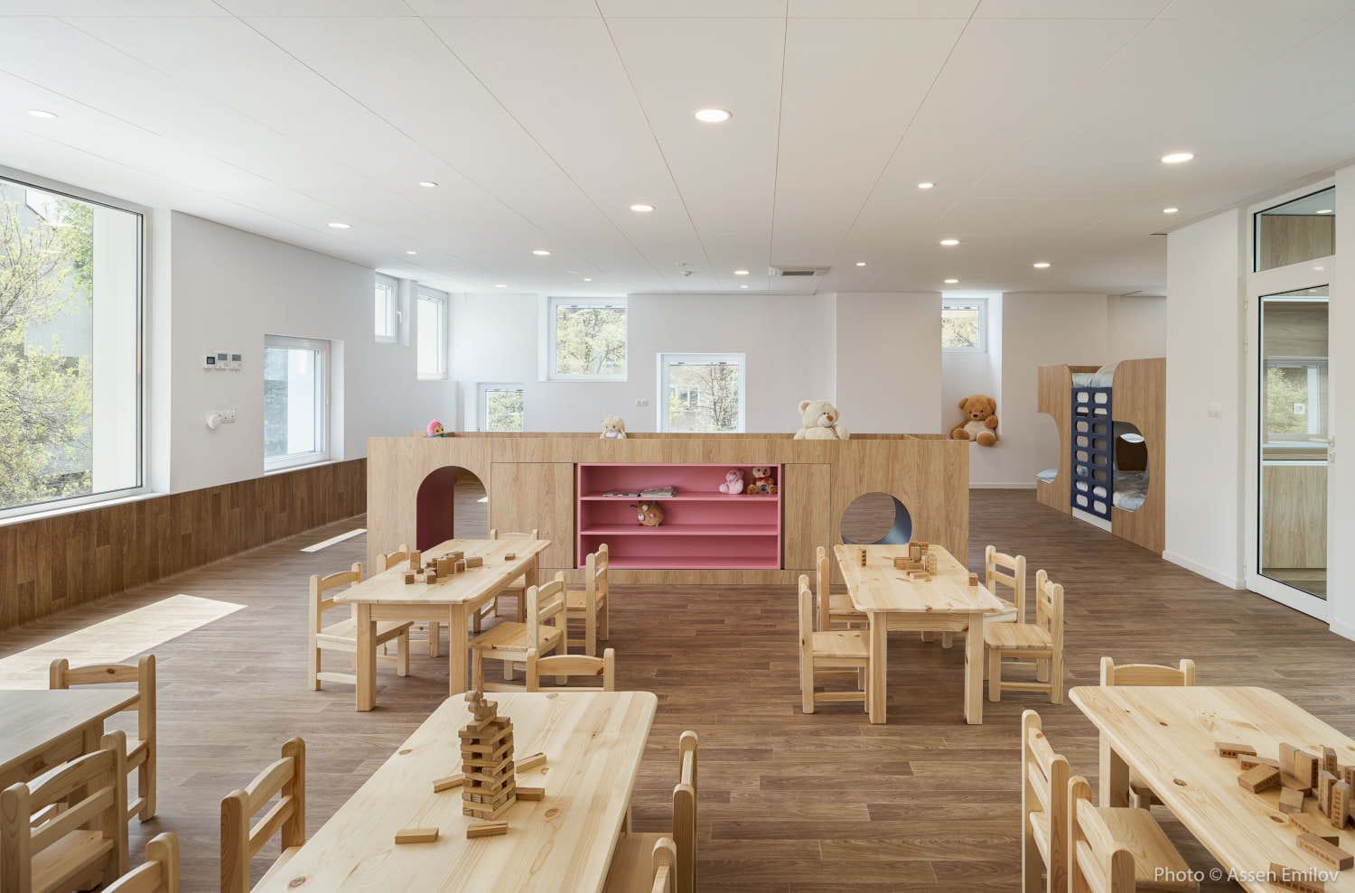 По този начин може да се планират детски градини с многофункционални зали за спорт, музика, родителски срещи, годишни празненства, с възможност за включване на родителите и кварталната общност в живота на детската градина, както и за съвместна работа на различни възрастови групи заедно. Спалните помещения може да се интегрират със занималня и места за хранене, като се създават гъвкави и адаптивни пространства за динамичните нужди на децата.