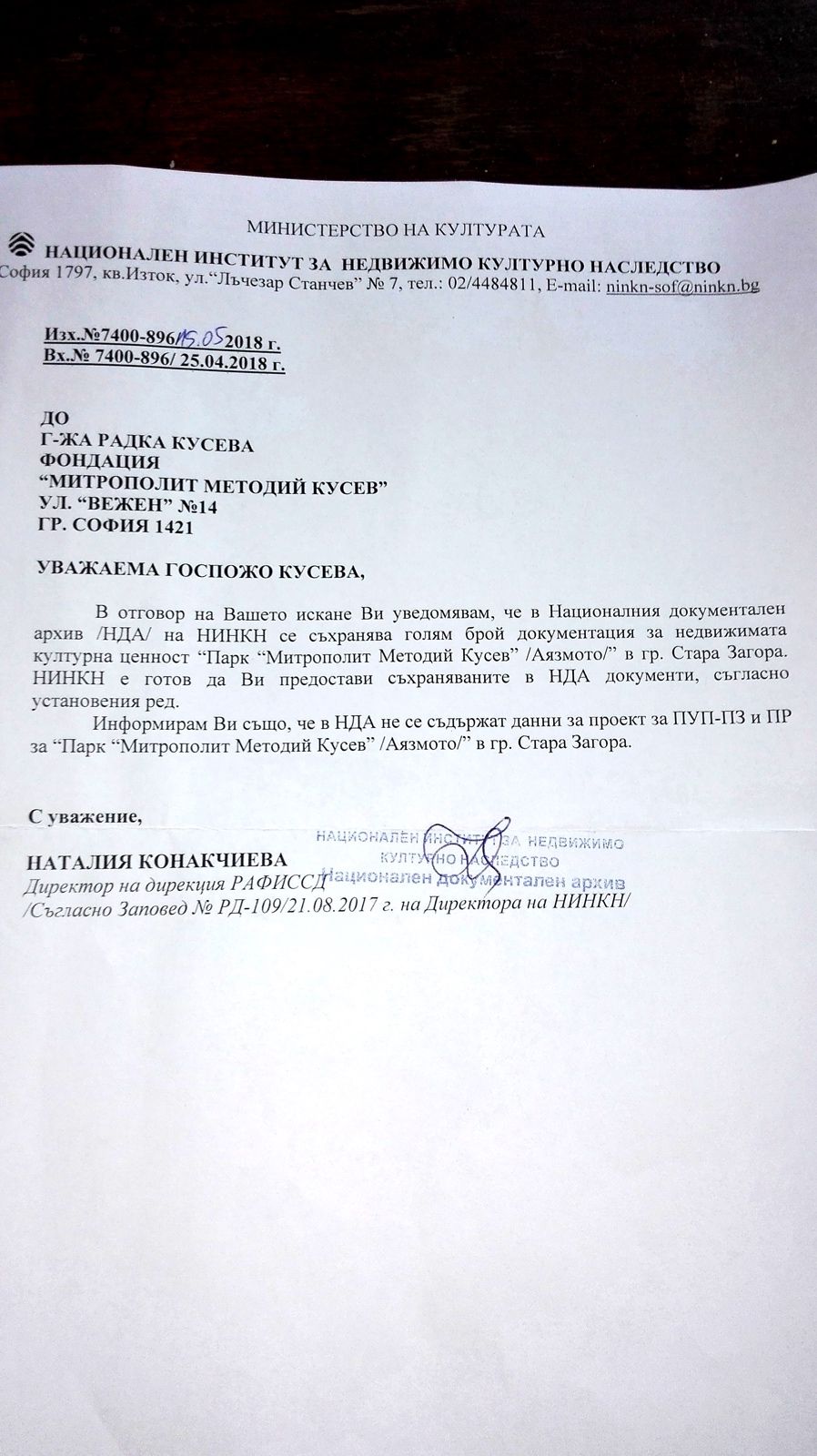 Противоречието в твърдението на властта е очевидно. Защото се оказва, че нов план е поръчан от Община Стара Загора на ДЗЗД „Трейспроект“ и е изработен още през 2013 г., както заявява пред няколко старозагорски медии архитект Александър Кирев, обявен като главен проектант на този устройствен план. И пак по негови думи, планът е изпратен за съгласуване в Националния институт за недвижимо културно наследство (НИНКН), тъй като всякакви дейности в недвижими културни ценности изискват това. Но не става ясно защо и досега планът не е процедиран и защо, след като не е необходим, този ПУП е поръчан и за него е платено.