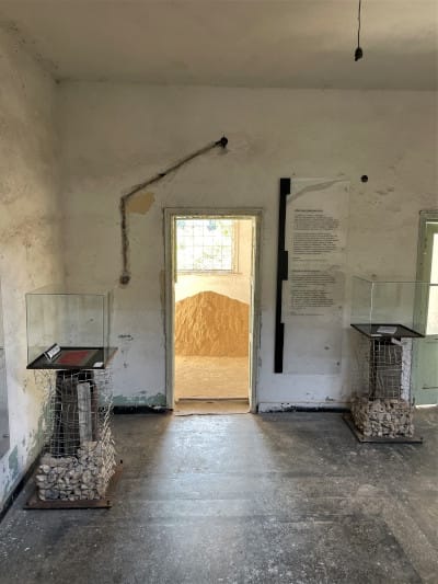 Запазена сграда от лагера и част от мемориалната експозиция. Снимки: Стелиян Ботев
