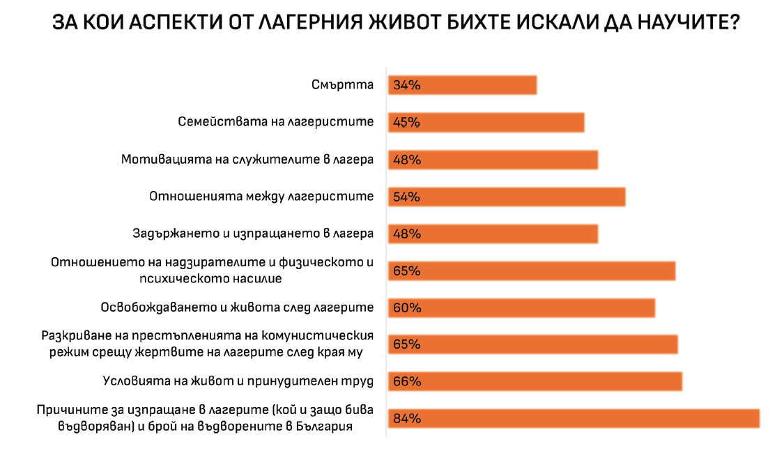 свързана с репресивния апарат на социалистическа България. С обновената през 2023 г. учебна програма по история за X клас тоталитарният период вече присъства по-осезаемо, като се включва и темата за лагерите. В рамките на две теми се засягат промените в политическото развитие на България след Втората световна война, включително преходът от „народна демокрация“ към съветизация. Тематизират се политическият терор, репресиите и нарушаването на граждански, политически и човешки права и свободи. Отделен въпрос е дали това съдържание ще се преподава качествено и безпристрастно, дали разговорът за насилието и терора ще надхвърля фактологията и ще се работи за изграждане на емоционална интелигентност и осъзнатост, които са важно условие да се предотврати превръщането на историята в настояще.