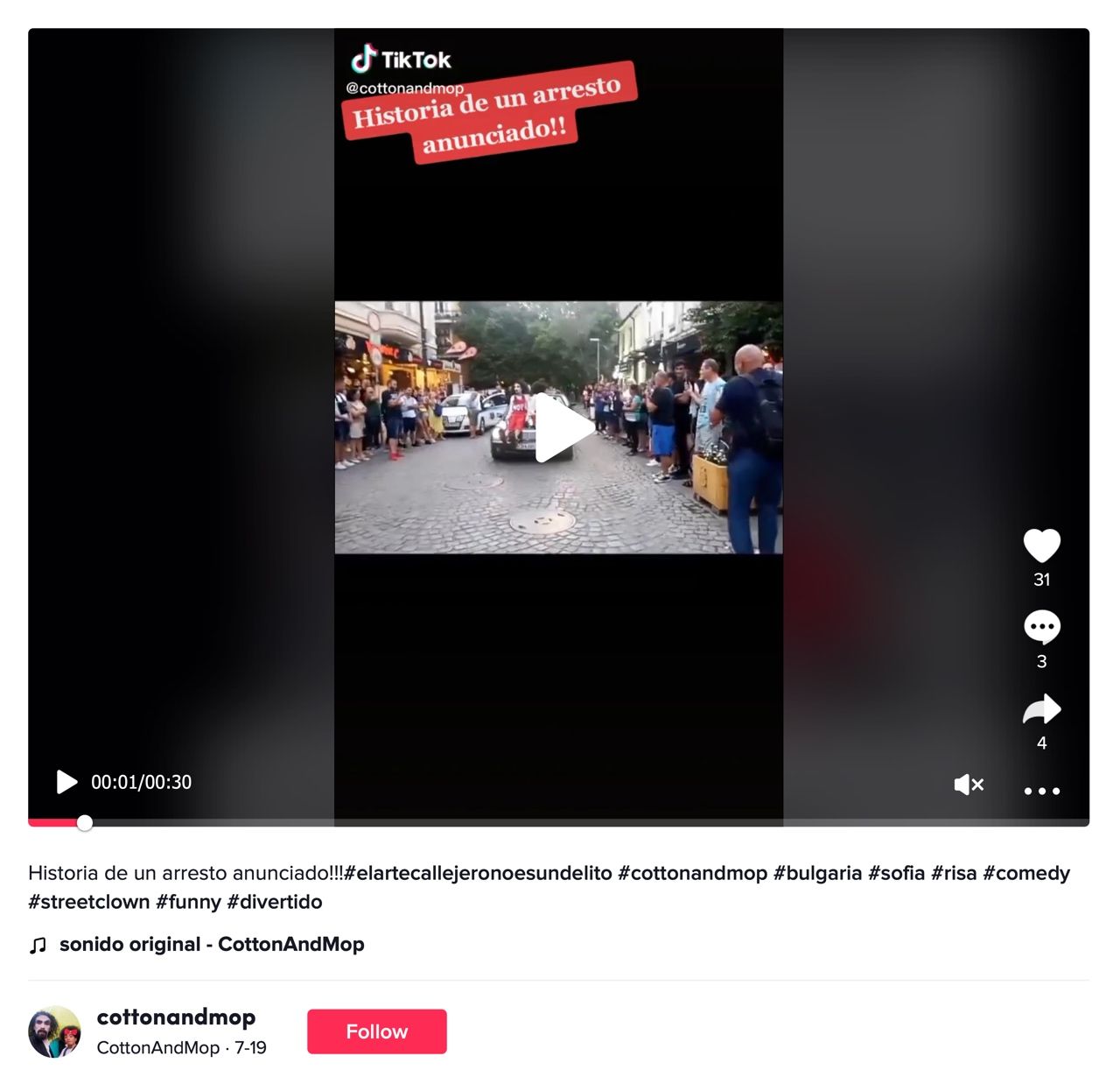 Такъв е надписът на видеото от арестуването им, което Котън и Моп са качили в своя TikTok. Действието се развива на ъгъла на една от пресечките в пешеходната част на Витошка. Видеото показва четирима от десетте пристигнали на „местопрестъплението“ униформени и една от трите патрулки. Понеже да се удари клоун, при това пред тълпа в центъра на столицата, не е съвсем приемливо, възпирането видимо не е лесно за органите на реда – както се вижда от последващото видео на двамата братя, озаглавено „История на един предизвестен арест“. Видеото е озвучено от песента Boss of Me, станала популярна от сериала Malcolm in the Middle с припев „Ти не си ми шеф“.