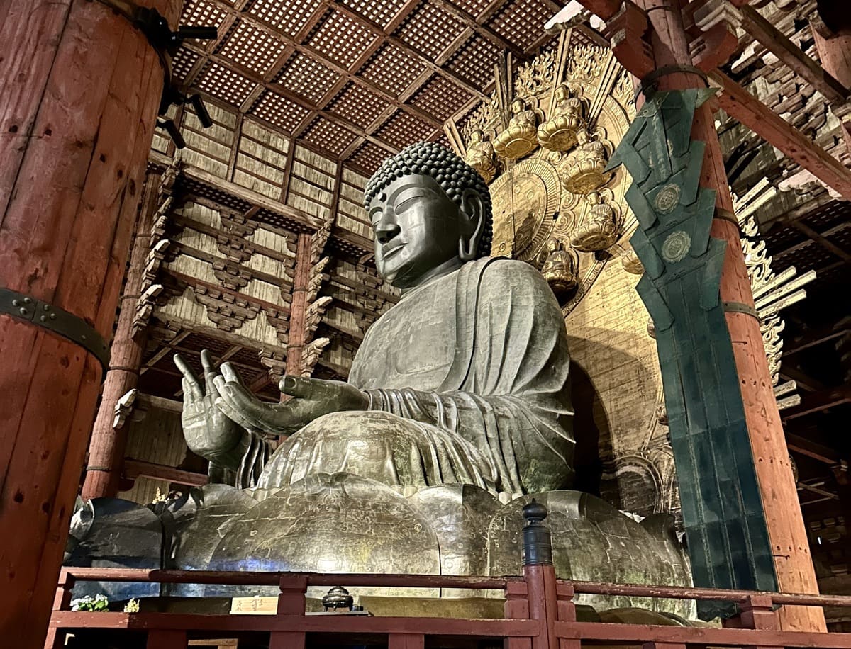 Храмът „Тодай дзи“ е най-внушителният пример от времето, в което Нара е била столица. Макар сградата и интериорът да са реновирани многократно, най-голямата бронзова статуя на Великия Буда – Дайбуцу – и до днес впечатлява с внушителните си размери. Император Шому я поръчва в отговор на войните и на пандемията от едра шарка, която избива една трета от населението на Япония в периода 735–737 г. Е, тази вълшебна статуя въпреки красотата си не успява да спаси Нара от упадъка, в който градът потъва след 794 г., когато престава да бъде столица. Толкова за скъпите храмове и религиозни статуи.