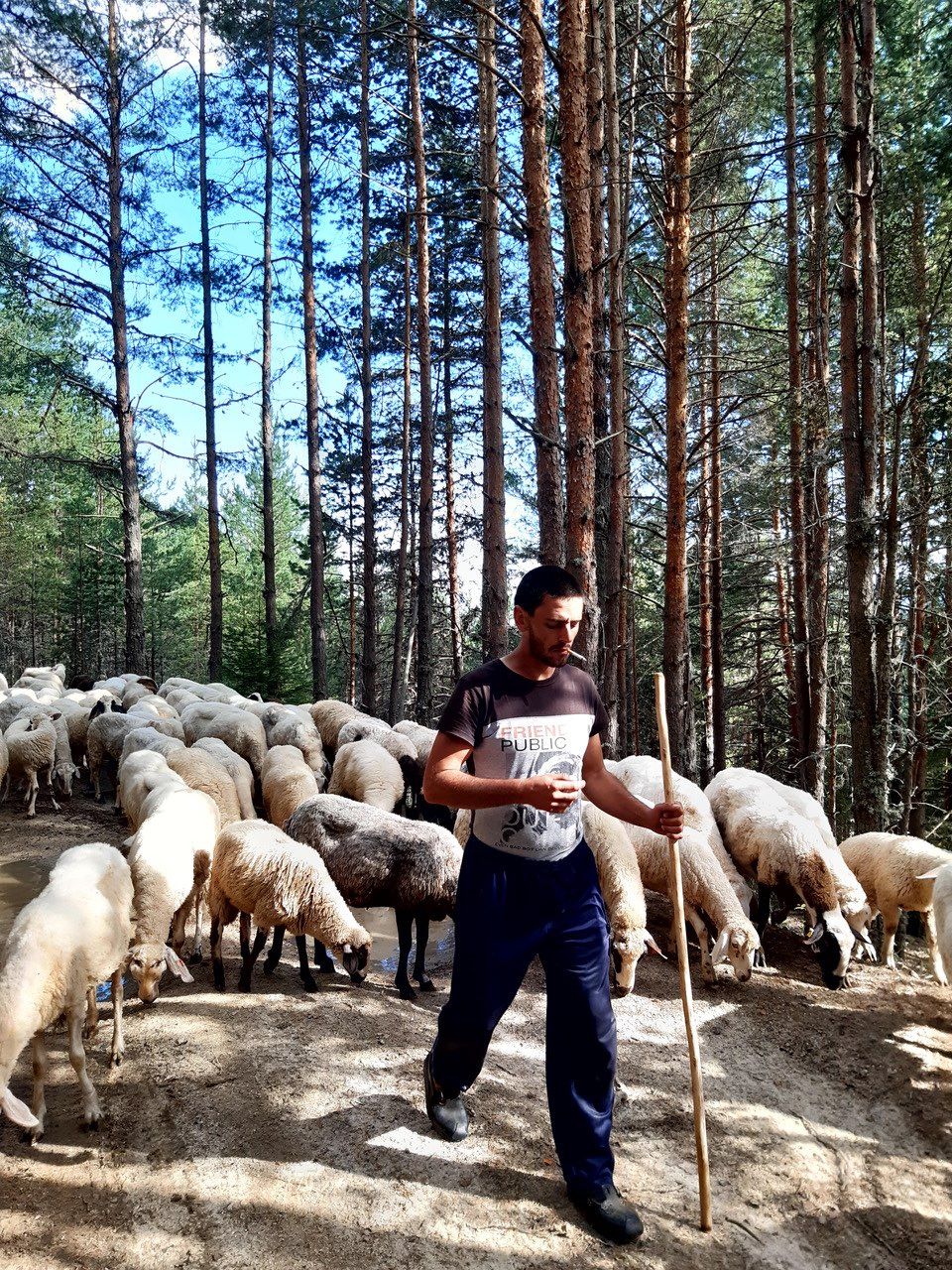 Викаше като всички овчари, но не удряше овцете или кучетата с тоягата си. Най-дълго стояхме край притока, защото там тревата беше най-вкусна. Даже за кратко поседнахме.