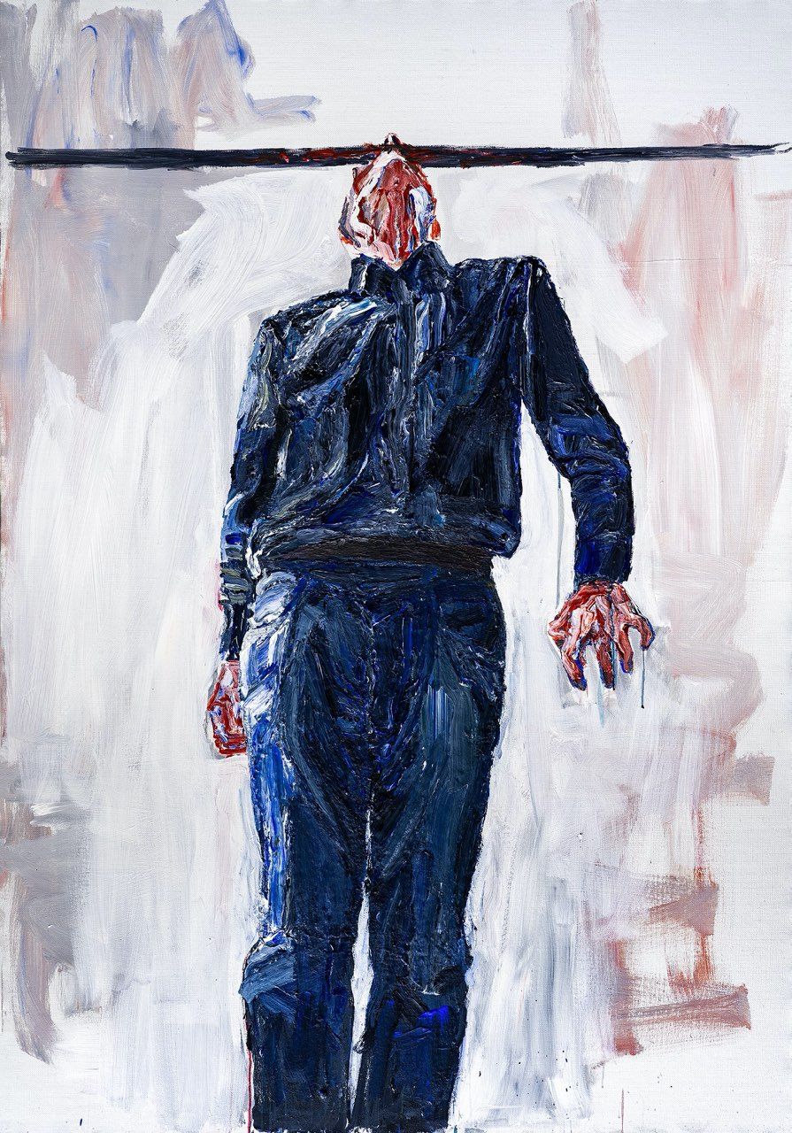 В най-драстичните ти (и всъщност най-любимите ми) твои картини мъжът, човекът, живата рана, е захапал метален прът – и виси… Защо го хапе – за да не вика от ужас ли? Каква е социалната и политическата проекция на твоето творчество?