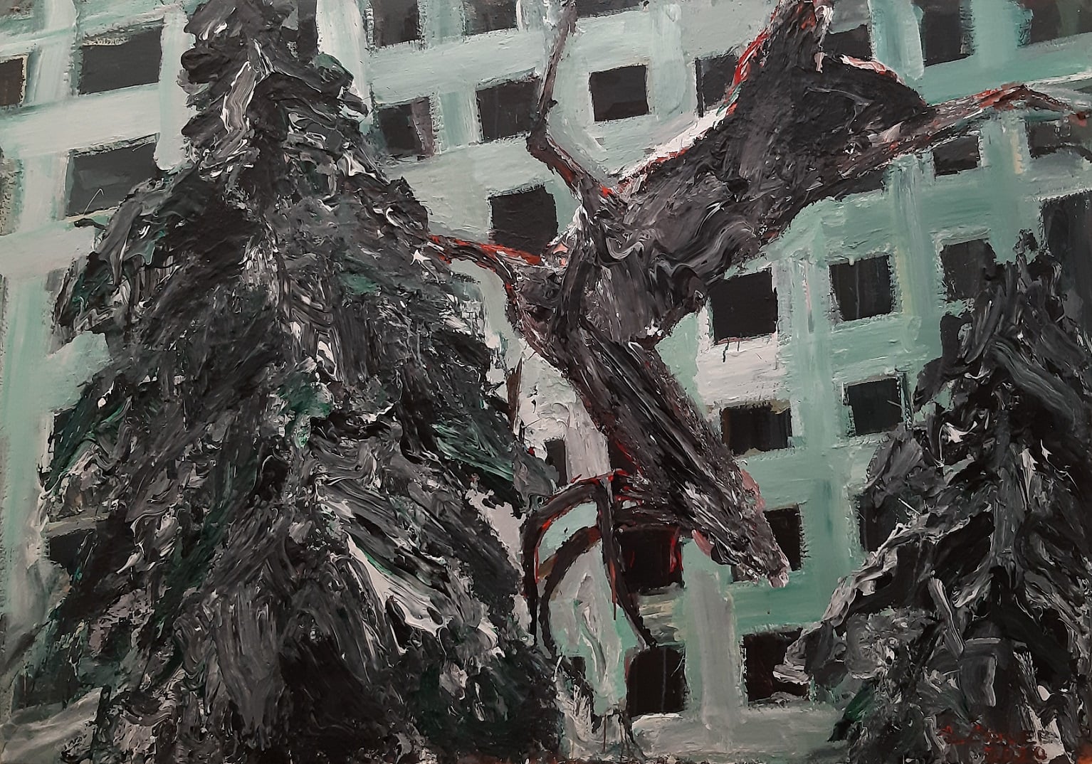В твоите работи разпознавам и една коледна елха. Дори съм готов да я видя пред фасадите на „Триъгълника на властта“ в София. Елхата ужасява. Сякаш е погром над Свещеното изобщо. Има ли според теб шансове Рождеството отново да бъде празник?