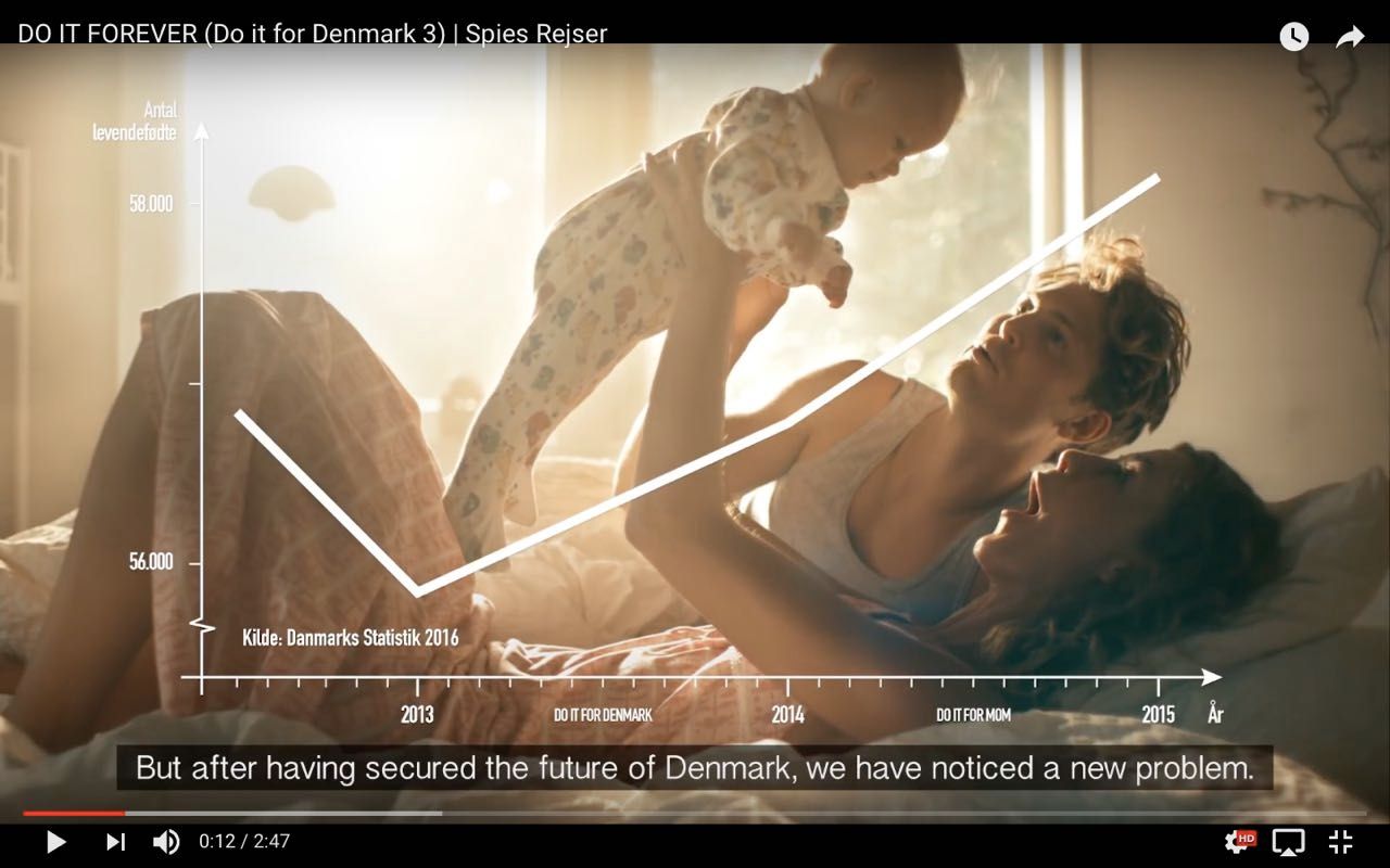 - В датския случай става дума за рекламна кампания на туристическа фирма. Въпреки че посланието е „за Дания“, целта е потребителите да се убедят, че като ходят на почивка, им се прави повече секс.