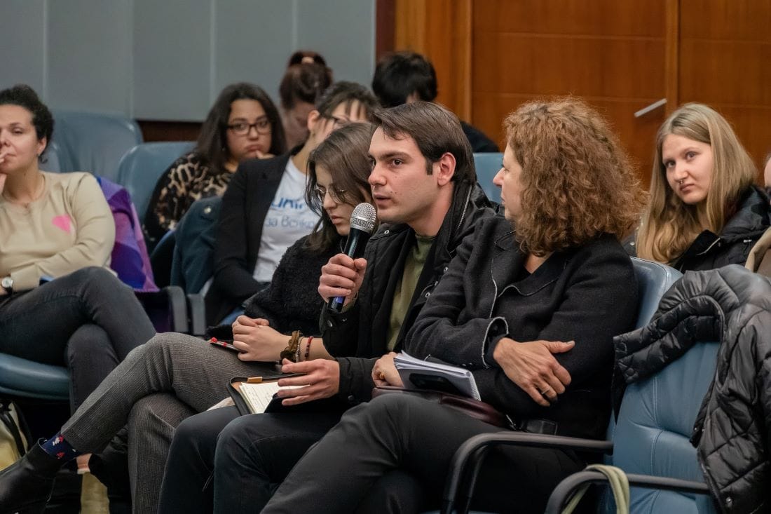С Велина Тодорова, представителка на България в Комитета по правата на детето, и колеги от „УНИЦЕФ България“ и от Факултета по педагогика в СУ © Добрин Минков