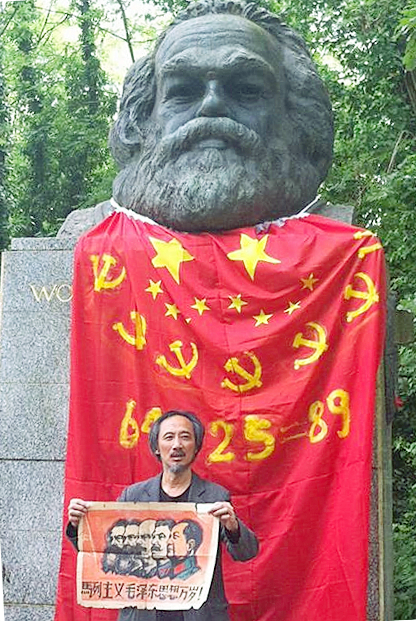 Стачкуващата студентка. / Демонстранти от Съюза на китайските писатели и Академията „Лу Сюн“. Почти никой от тях не пише за изживяванията си на „Тиенанмън“. / На 25-тата годишнина от протестите на „Тиенанмън“ Ма Дзиен завива в червено знаме паметника на Маркс в Лондон. © Личен архив