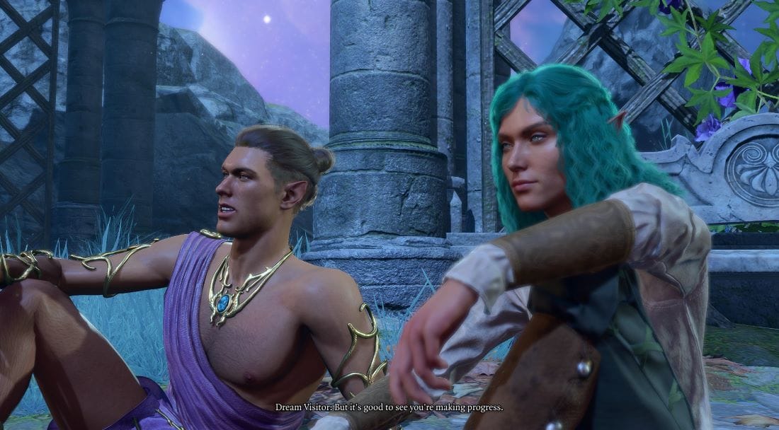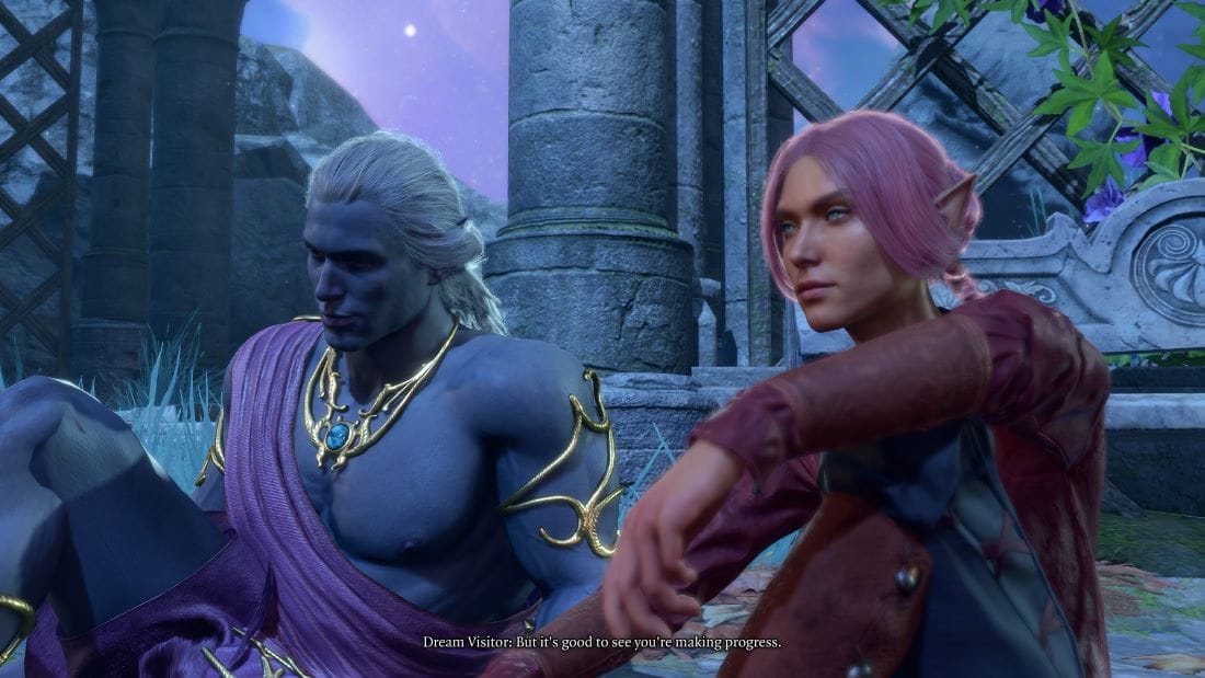 Кадри от „Болдърсгейт 3“. Играчът влага в изграждането на Посетителя на сънищата фантазиите си за обаятелен помощник.