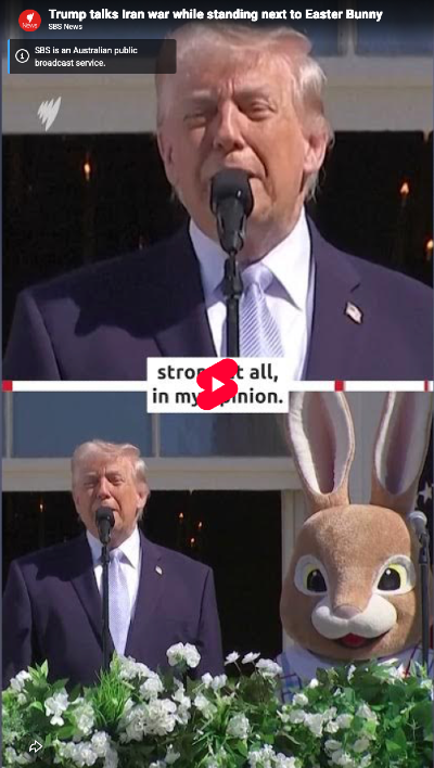 Може би най-запомнящият се момент, който веднага се превърна в част от кошерния ум на света и роди стотици мемета, бе излизането на Тръмп заедно с великденския заек, с когото президентът отправи нова порция заплахи към Иран (за незапознатите читатели, които биха разбрали цялата ситуация погрешно и абсурдно – заекът не каза нищо за Иран, говореше само президентът, но близостта на самия заек все пак предполага определена заедност, така да го кажем).