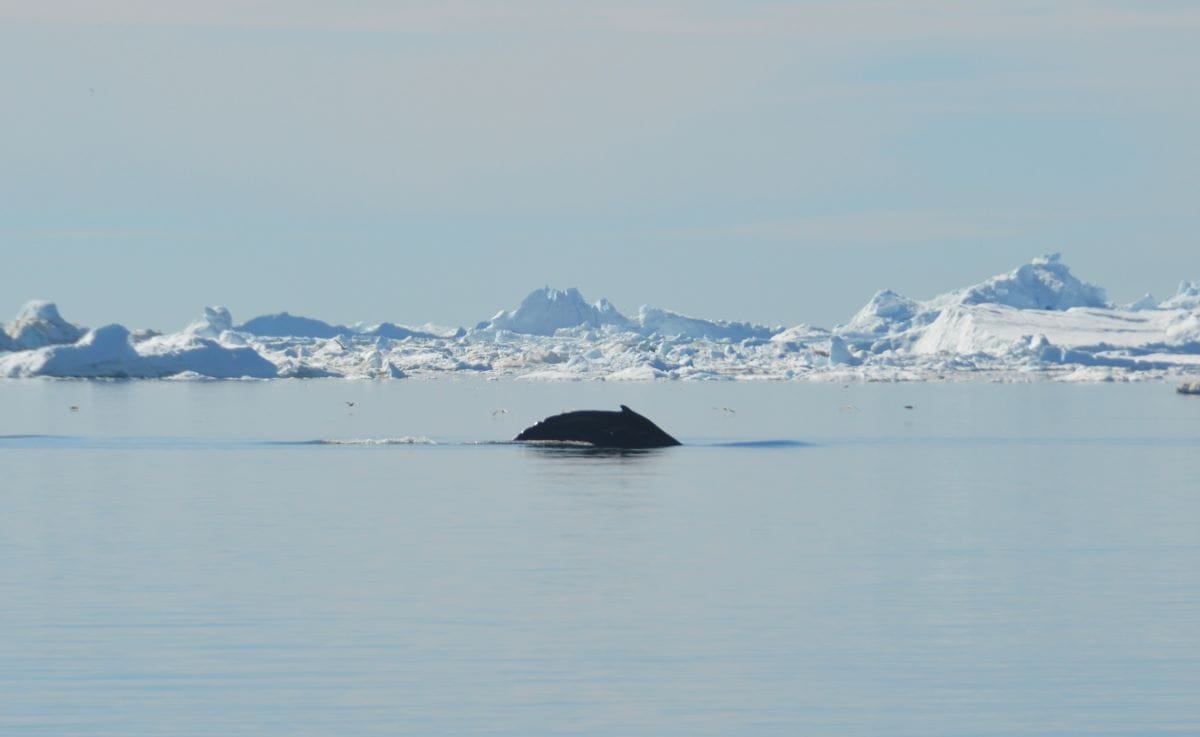 Връх на плаващ айсберг / Гърбат кит, видян от ресторанта / Малкият кей на Илиманак © Светла Стоянова