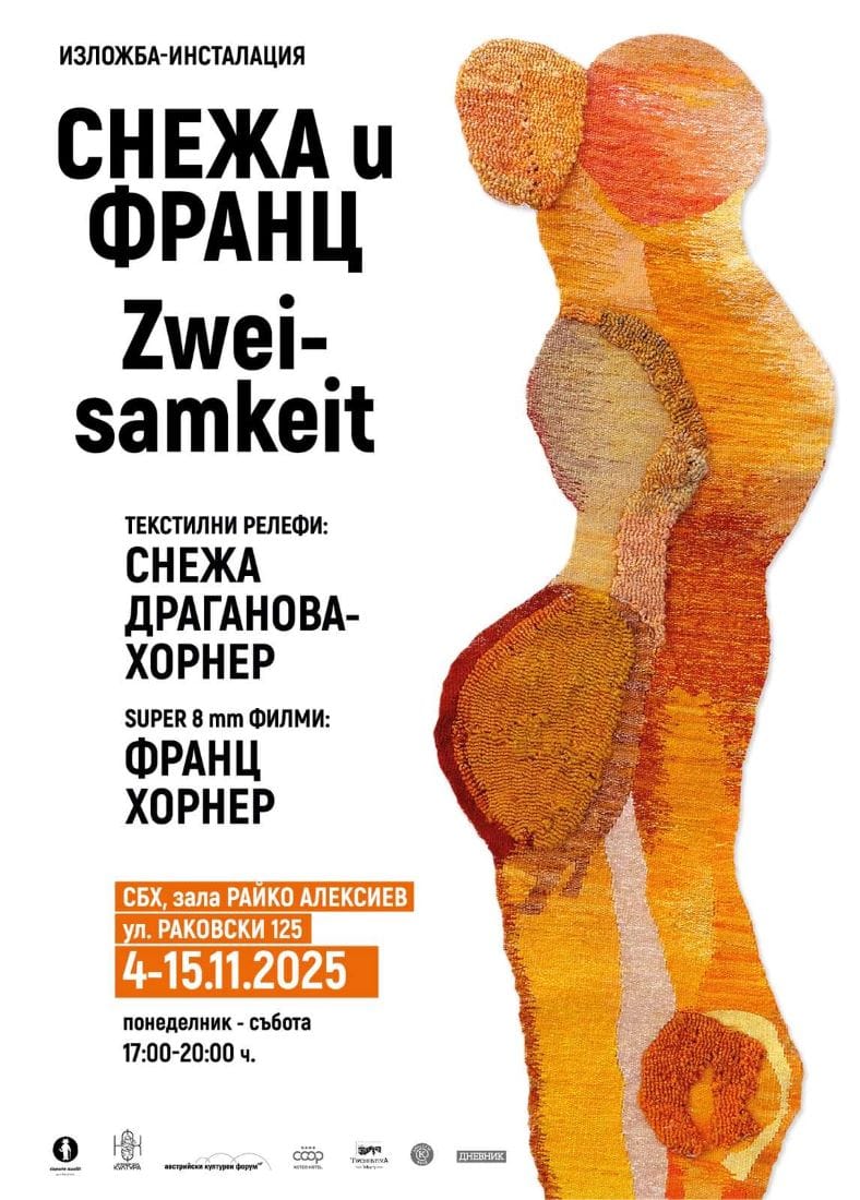 Ще има изложба и за първи път в едно пространство – в галерия „Райко Алексиев“, ще бъдат изложени заедно Франц с неговите филми и Снежа с нейните текстилни релефи и текстилни абстрактни картини. След филма ще могат да се видят като допълнение нещата, които са показани на екрана, а и физически ще могат да се пипнат. След прожекцията ще отидем до галерията. Голяма част от работите са направени от Снежа след смъртта на Франц. Тя преработва цялата си травма и изобщо техните взаимоотношения в тези произведения. Георги Дончев, един от композиторите на филма, ще направи музикален пърформанс. Изложбата ще е вечерна, ще може да се гледа от 17 до 20 часа. Няма да бъде отворена през деня.