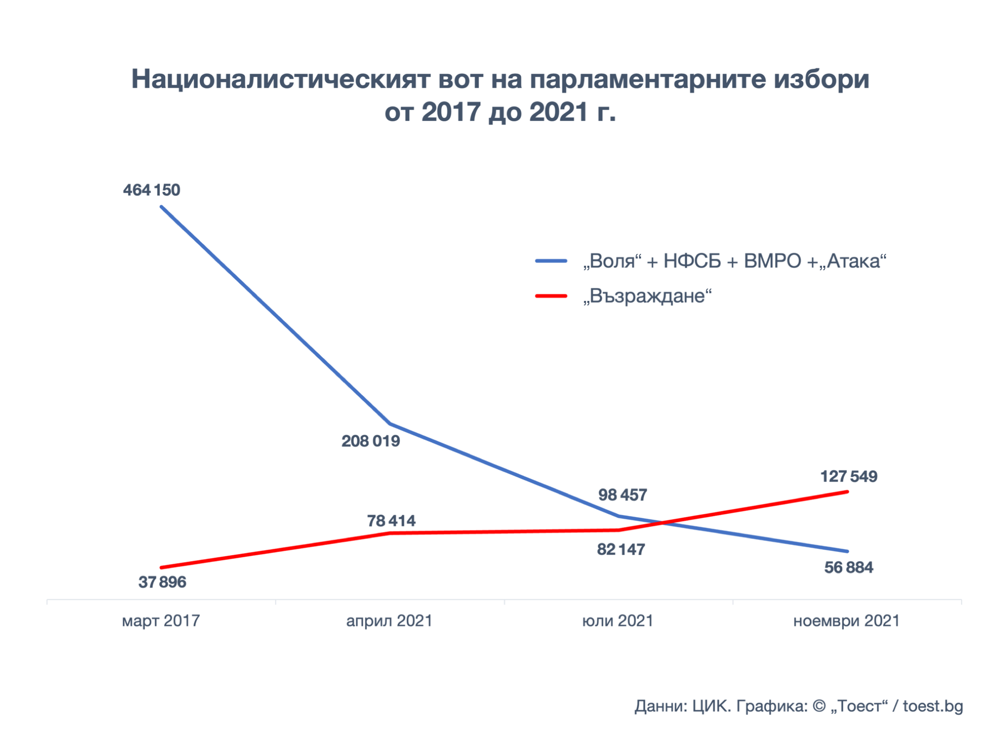 Ала и без резултата от това изследване имаше достатъчно индикации, че „Възраждане“ може да влезе в парламента. Това е единствената от националистическите партии, гласовете за която бележат плавен, но устойчив ръст от 2017 г. насам.