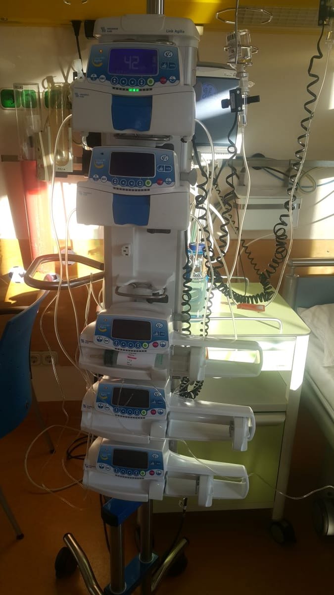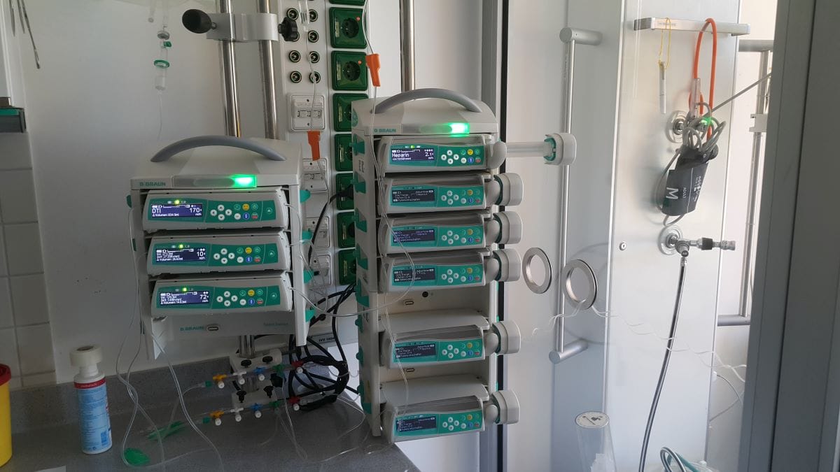 За да не се налага сестрата да влиза многократно, защото това повишава рисковете, в стерилния сектор перфузорите и инфузоматите (машините, които регулират вливането на лекарствата) бяха изнесени в преддверието. В стаята през стената влизаха две гъвкави тръбички, които се поставят на пациента.