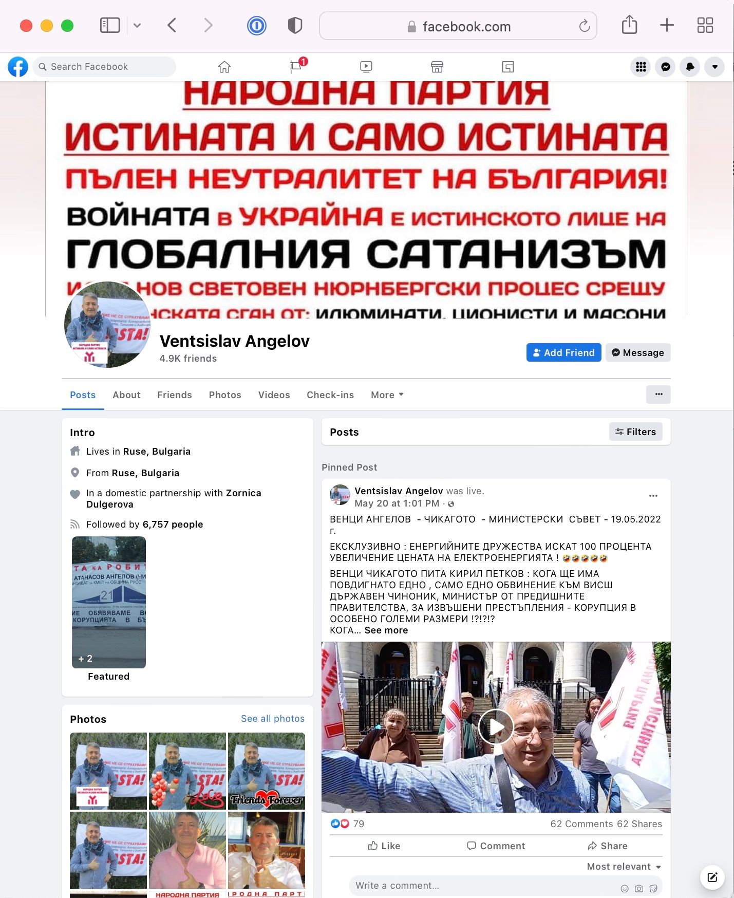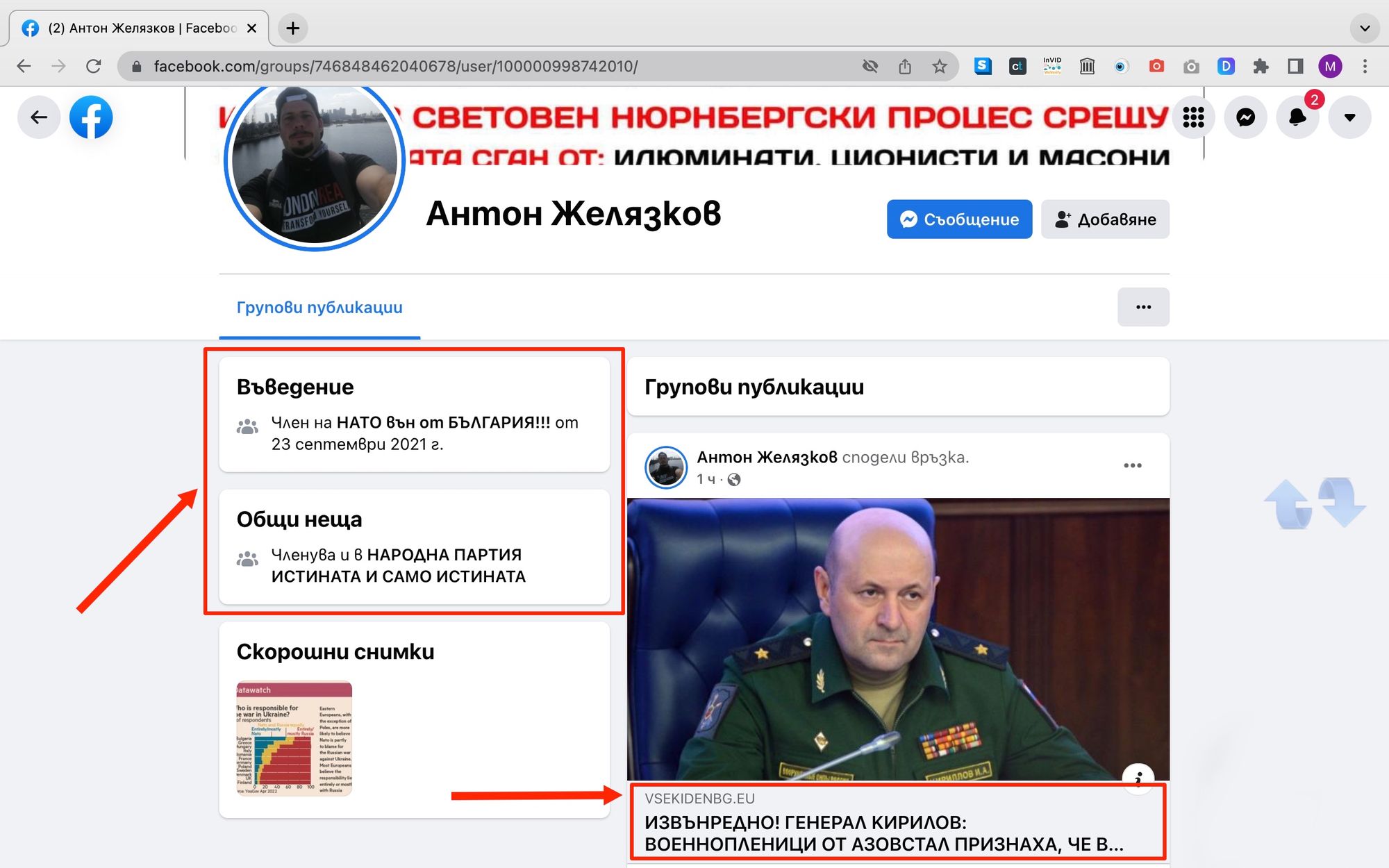 Авторите и източниците на дадена информация имат огромно значение. Един от основните разпространители на невярна информация в разгара на пандемията – Венцислав Ангелов – Чикагото, на когото дължим невярното твърдение, че „самолетите пръскат с коронавирус“ – днес е свързан с огромния транспарант пред сградата на правителството, който гласи, че „войната в Украйна е истинското лице на глобалния сатанизъм“, пред което България трябва да запази „пълен неутралитет“. Клиповете на Чикагото се разпространяват в десетки Facebook групи от профил на име Антон Желязков. Той пък на свой ред системно споделя статии от сайта vsekidenbg.eu, чиито първи публикации са от края на април т.г. и са с насочено антиправителствено и проруско съдържание.