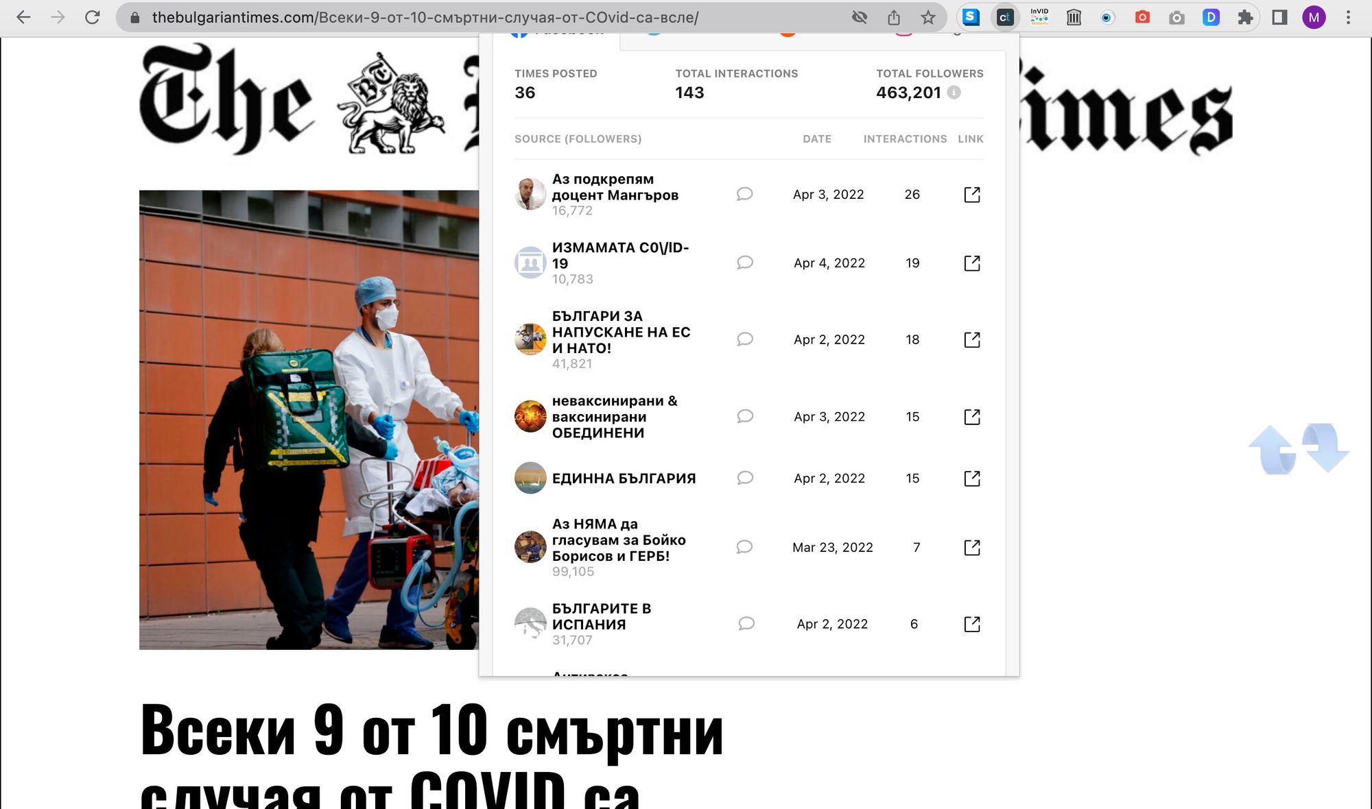 В статията се премълчава и основната бележка за интерпретиране на данните – при население с много висок процент на ваксинално покритие е напълно нормално да има висок процент заразени ваксинирани просто защото мнозинството от хората са ваксинирани. Въпросът е при колко от тях заболяването протича тежко – леталният край продължава да е в пъти по-вероятен при неваксинираните, което в материала липсва. Вместо това се поднасят множество разбъркани данни от най-различни места, като отново целта е объркване на читателя. В рамките на няколко дни статията е споделена в множество Facebook групи.