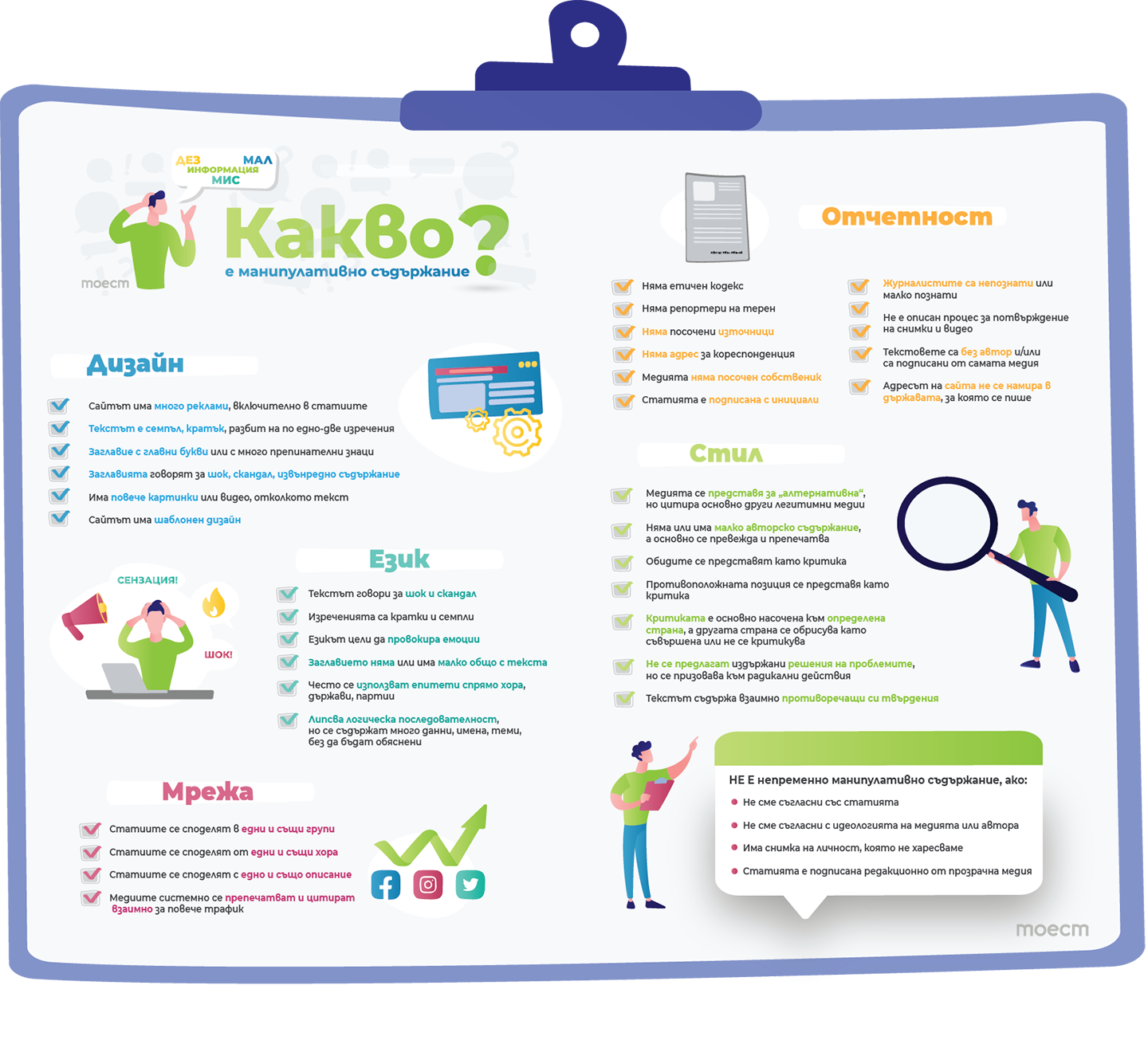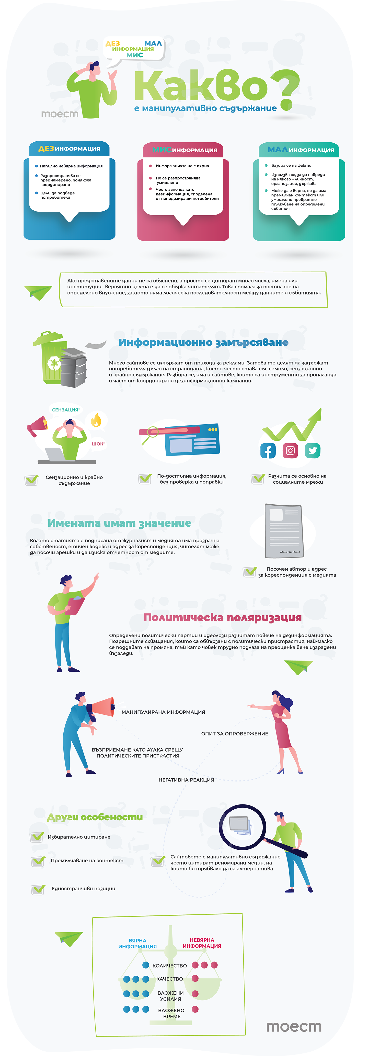 Обърнахме се и към нашите читатели с въпроса какво според тях представлява манипулативното съдържание. Отговорите им обобщават обяснените вече признаци: подвеждащи и емоционални заглавия, липса на източници, дата и автор, както и използване на език, който цели да повлияе на читателя и да му внуши определени изводи, вместо да го остави сам да формира мнение на база на фактите.