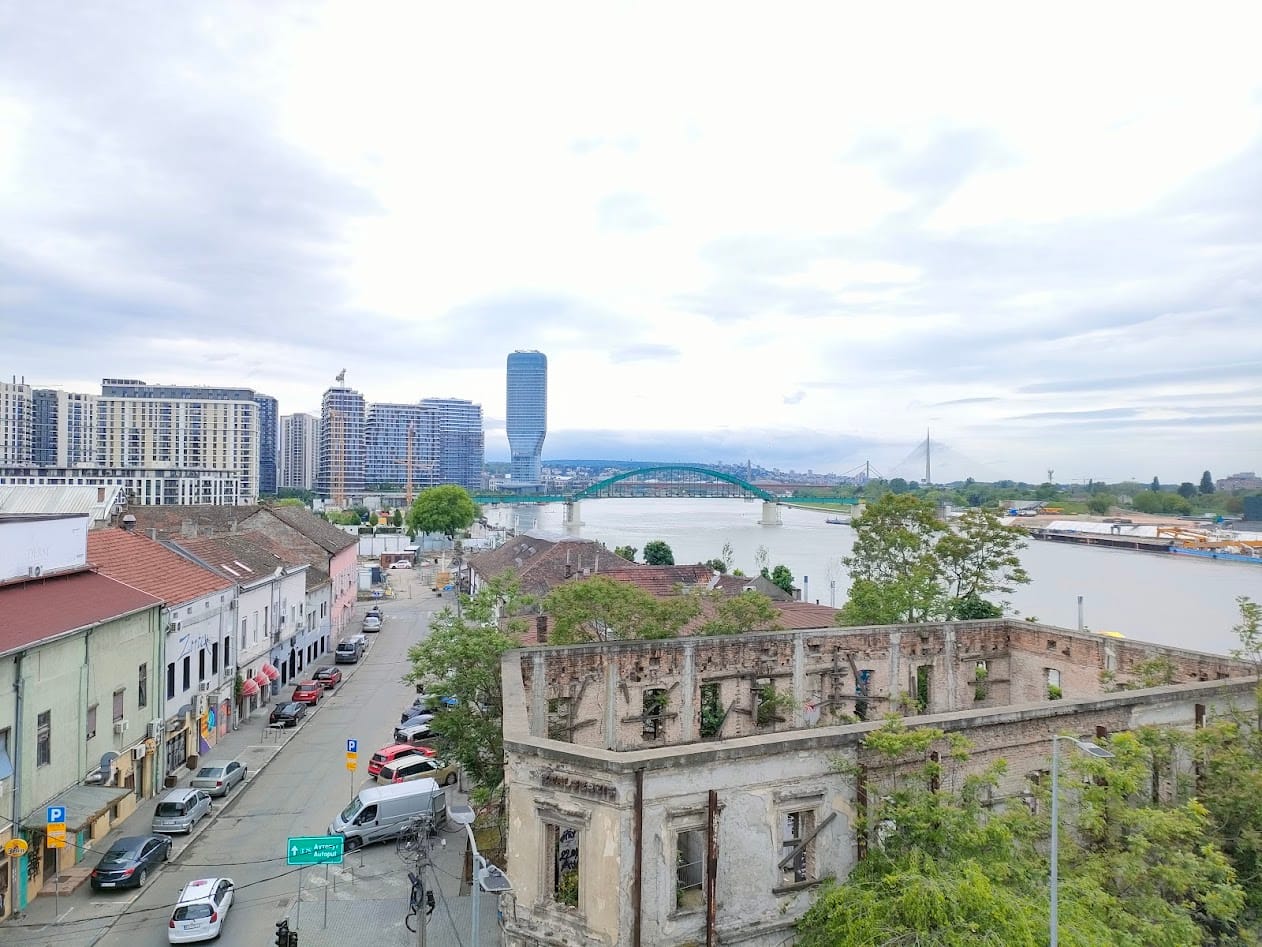 Застанали сме над Сава и гледаме на юг. Вляво се извисяват чудовищните мрачни небостъргачи на спорния проект Belgrade Waterfront (BW), или Beograd na vodi („Белград на водата“), насред реката изплуват самотни бетонни колони, а вдясно се вижда зелена метална арка. Едно момче пита дали това е някакъв мост. Да, отговаряме, и е една от най-старите и важни архитектурни емблеми на столицата – Савския мост. Част е от градския пейзаж от 1942 г. и е символ на съпротивата срещу нацистката окупация на Белград.