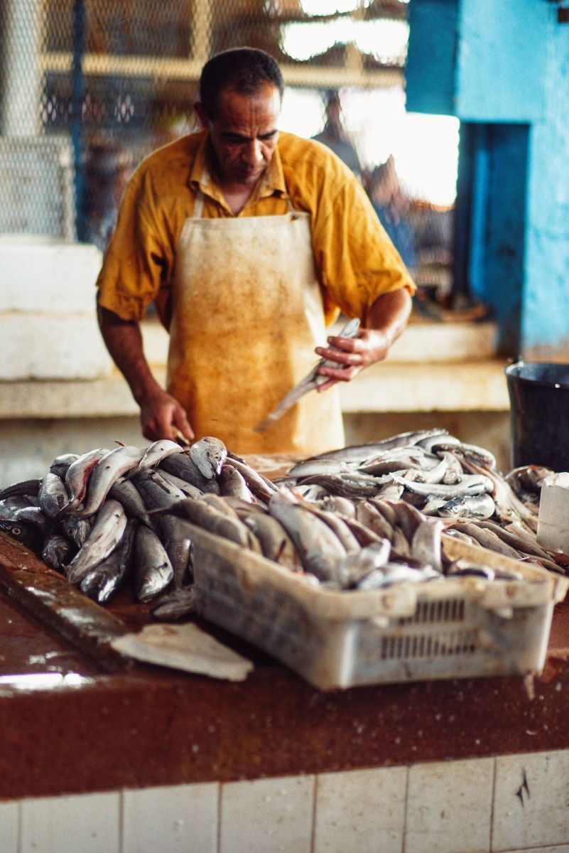 Подбери едра жива риба и я хвърли в съд, пълен със сока на червено грозде. Съдът трябва да бъде достатъчно голям и широк, за да може рибата да се потопи и да плува в него. Нека рибата се напие колкото може със сока. Забележимото спадане в нивото на сока показва, че той се е пропил в цялото тяло. Тогаз извади рибата, почисти я и я опечи. Поднеси я със сос, приготвен от листа на асафетида (анджузан или анджудан), мурри (течен ферментирал сос), бял оцет, сок от магданоз и на’на’ (култивирана мента) и семена от ким. Това ястие – както и всяко друго рибно ястие – няма достатъчно добър вкус и не е завършено, ако не се поднесе с [вървящия към него] сос за топене (сибаг), тъй като само чрез поднасянето на добавките към рибата тя става вкусна.