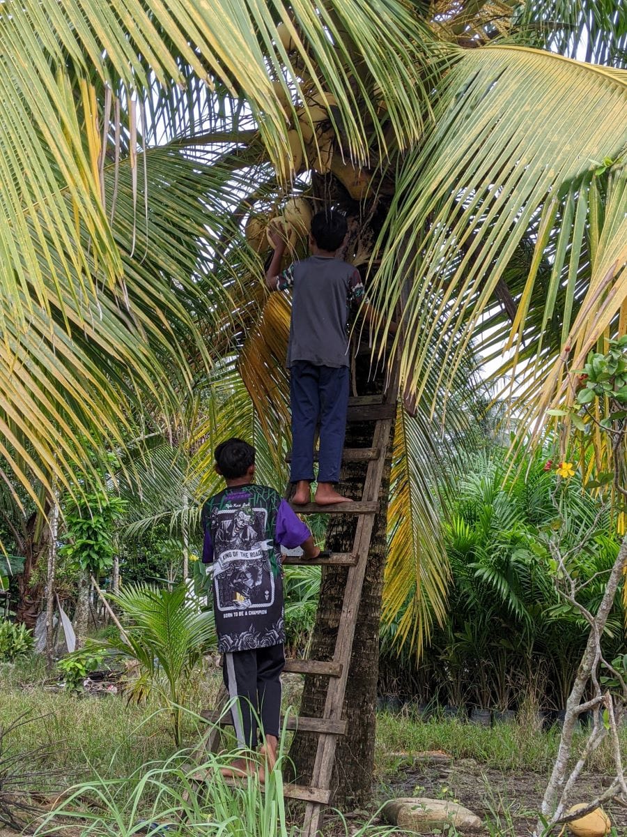 Ако се отбиете в някое кафене покрай селския път, малайците ще ви поднесат чаша кòпи. Това е тяхната дума за кафе и повечето хора го пият с лед. Всяка молба за гореща напитка ги обърква и по-вероятно е накрая отново да ви донесат с лед. (Другото упорито разминаване беше лютият сос. Тъй като пътувахме с тригодишната ни дъщеря, а тя не може да яде люто, непрекъснато питахме кое ястие не е. В повечето случаи ни отвръщаха: Ама ето! Това изобщо не е люто. И след секунди то се оказваше огън. Впрочем малайците по традиция си хапват лют ориз даже на закуска, а ако искате да си намажете филия – трудна работа, хлябът не е често срещан.)