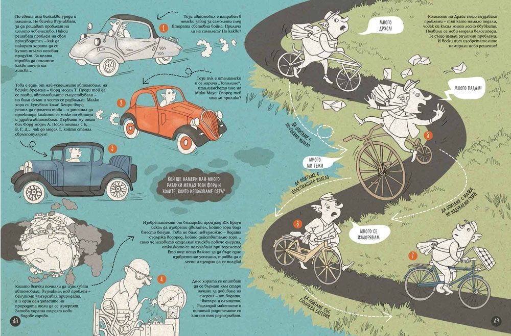 Водачи из различните музеи са необичайни герои – от учени до солници и други предмети и растения. Всяка глава приключва и с хубав списък от идеи как ученето да продължи. Всяко дете може да се почувства включено в разнообразни дейности: за някои би било интересно да направят експеримент, за други – да прочетат нещо допълнително, за трети – да идат в друг музей, където да открият свързани предмети. Авторите казват в предговора си, че са се опитали да активират всички сетива на децата, което много ми хареса – ученето все пак не е само интелектуална дейност, понякога трябва и да опиташ сам да си направиш сол.