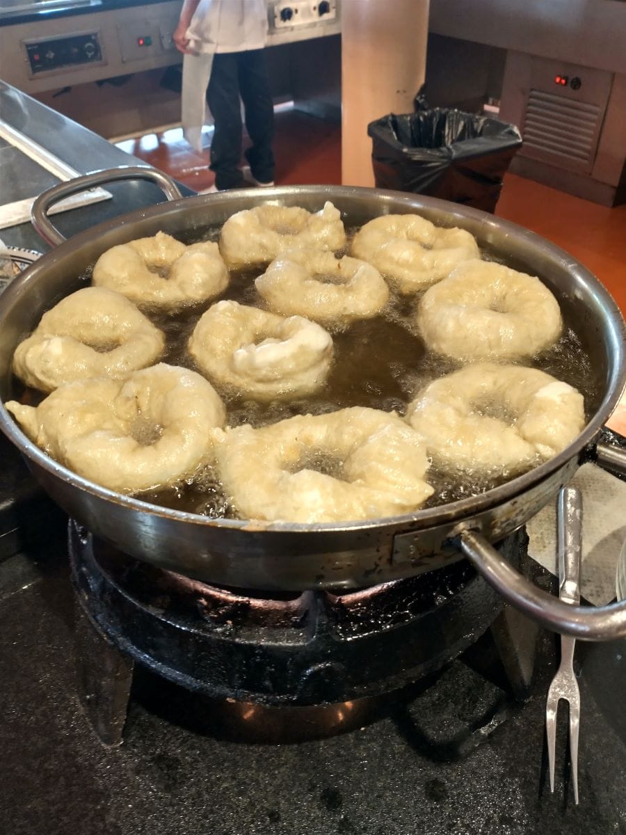 стотици туристи, закусващи, обядващи и вечерящи едновременно в огромни ресторанти, в които се приготвя разточително количество храна.