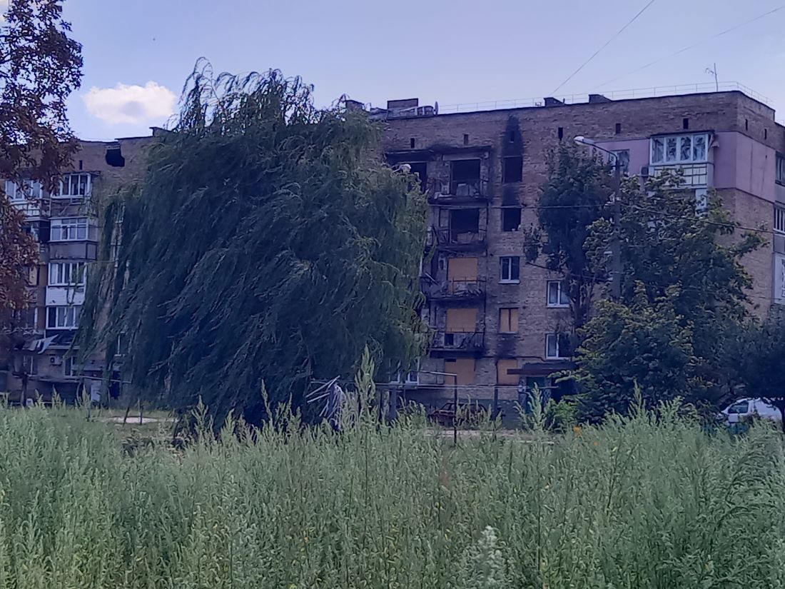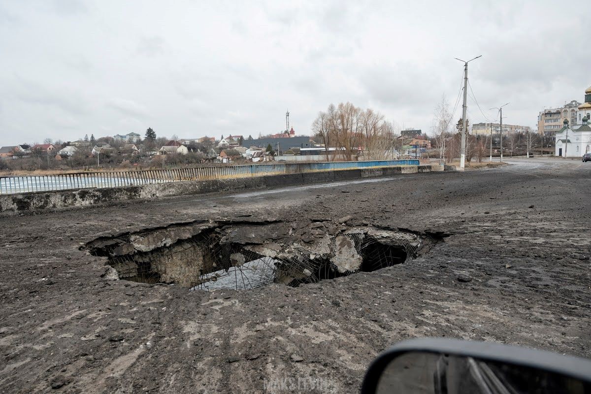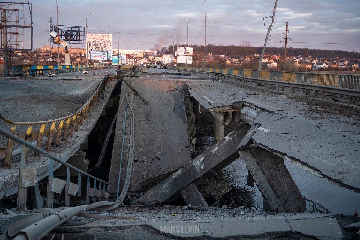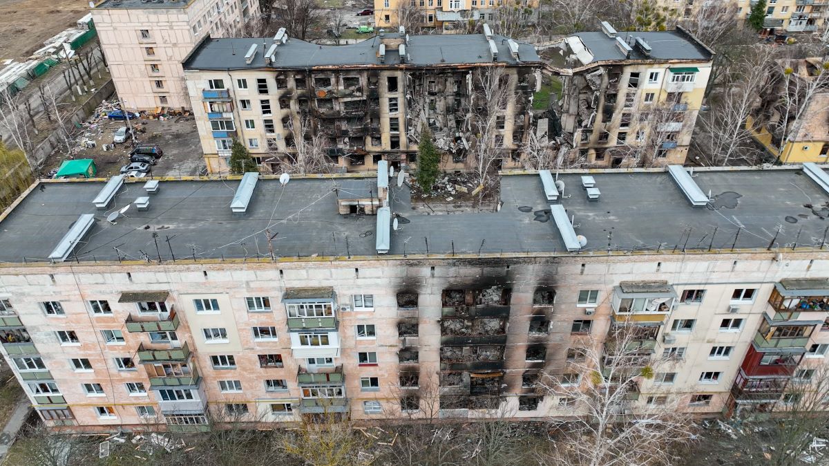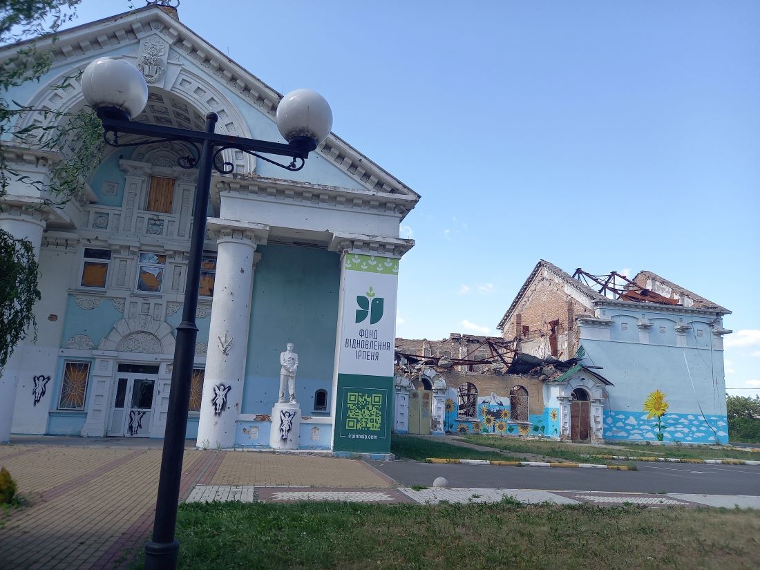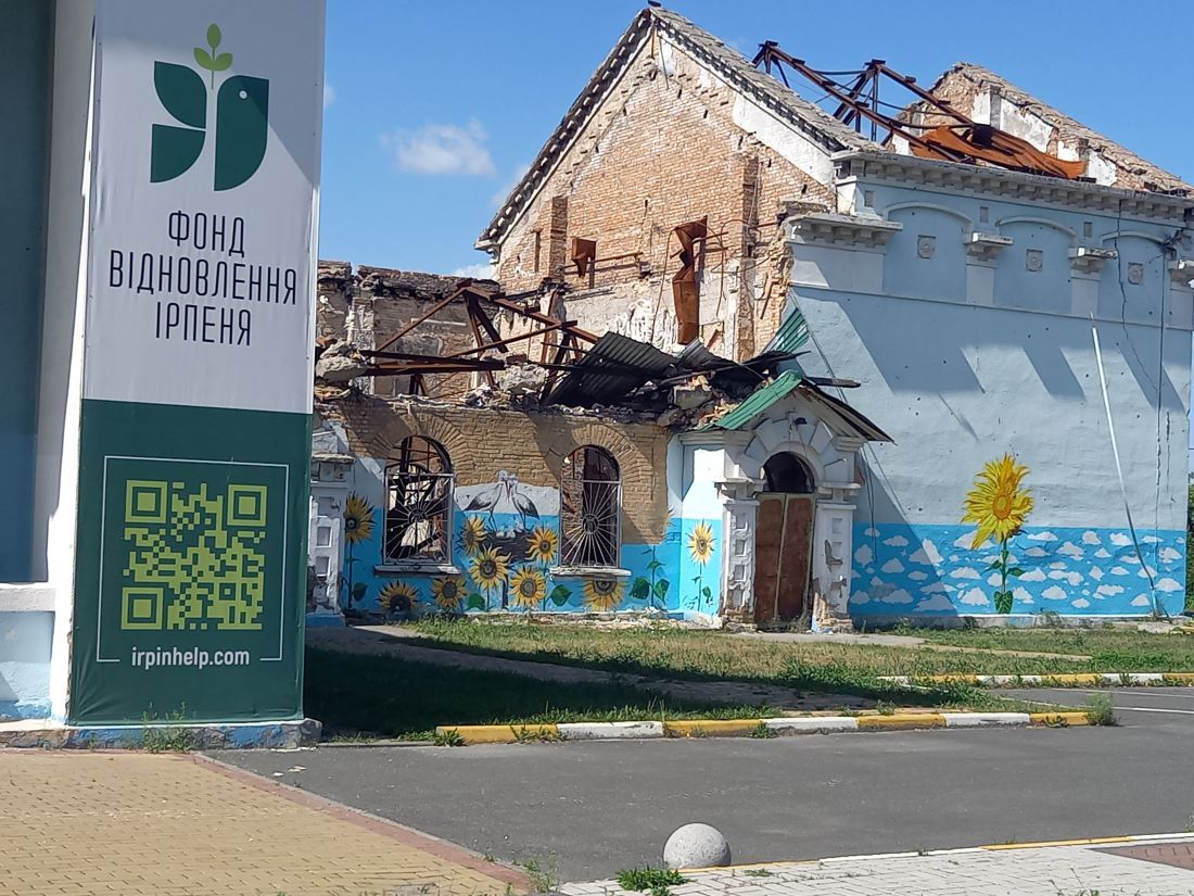 В края на Ирпин виждаме голяма сграда. Прозорците ѝ са избити, покривът е разрушен. В двора, обрасъл като джунгла, се търкаля изоставена кола. Това е бившата болница на Ирпин. Пожарът и разрухата вътре не са от небрежност. Десетина дни след нахлуването на Русия в Украйна градчето е обстрелвано с руски ракети. Едната се забива в болницата. Другата – в стадиона срещу нея. Осколките и ударната вълна помитат цели етажи на жилищния блок до болницата.