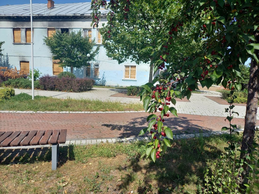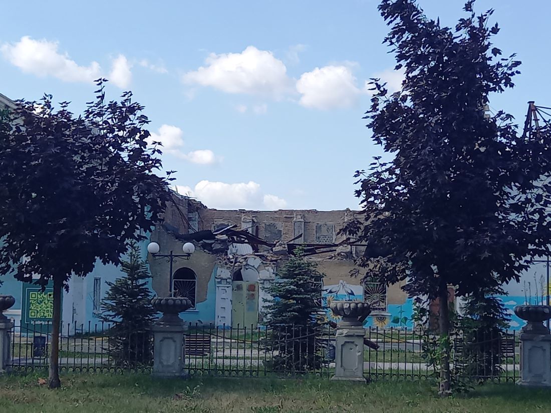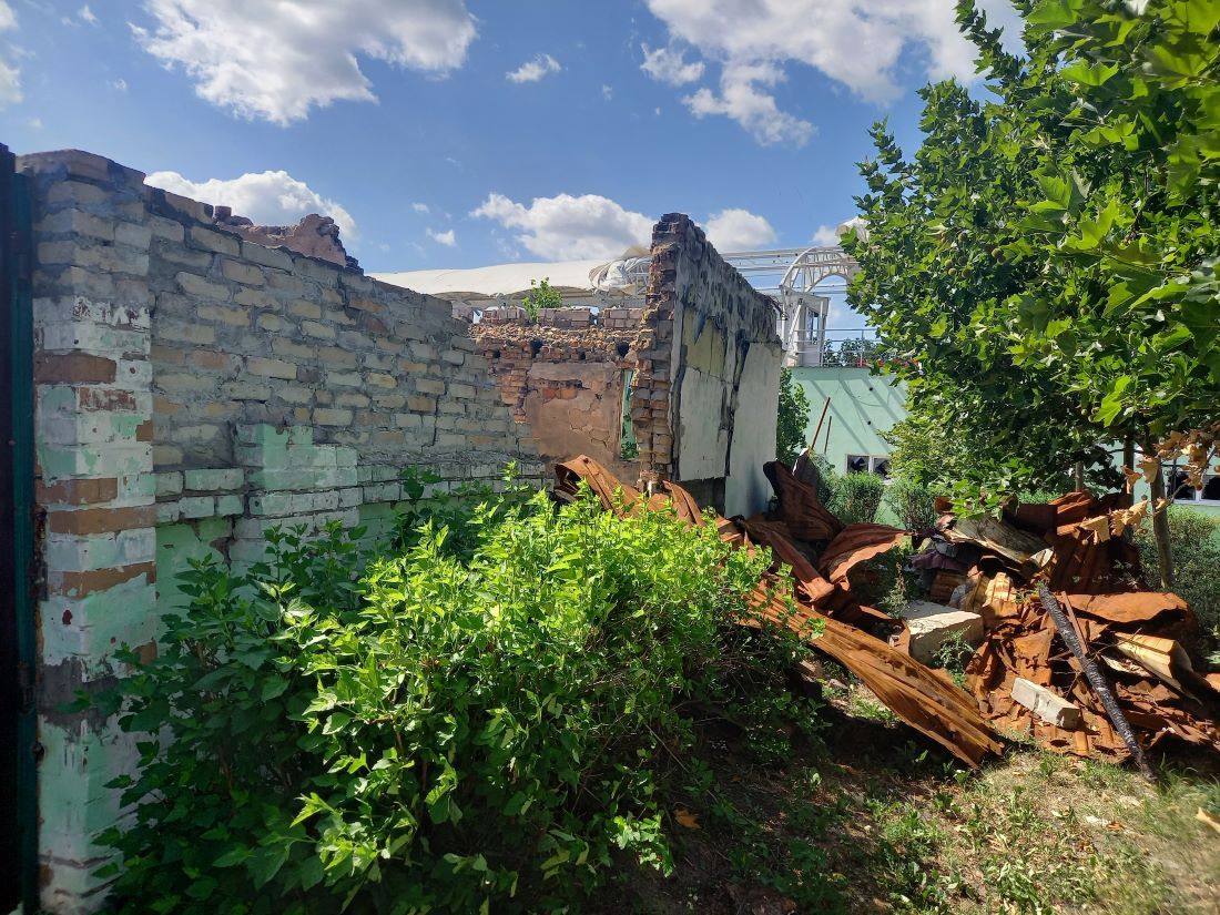 Сградата на стадиона е красива, боядисана в синьо. В покрива ѝ зеят огромни дупки, от които стърчат греди. Стените и прозорците са надупчени от шрапнели. Наоколо няма жива душа. Дърветата в парка са отрупани с плодове. Пейките са ремонтирани. Ще разгледам всичко това после. Тръгвам в друга посока и търся конкретни къщи. Веднага ги виждам. Залепени са до стадиона.