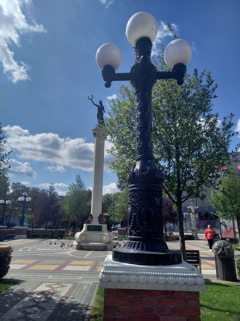 Посрещат ни нови къщи, всяка с градинка отпред, безупречно чисти улици, площад с пейки от тъмно дърво и стомана, заобиколени с дървета, а в средата на всичко това – малък танк. Не е истински. Засега той е единственото, което напомня за войната тук.