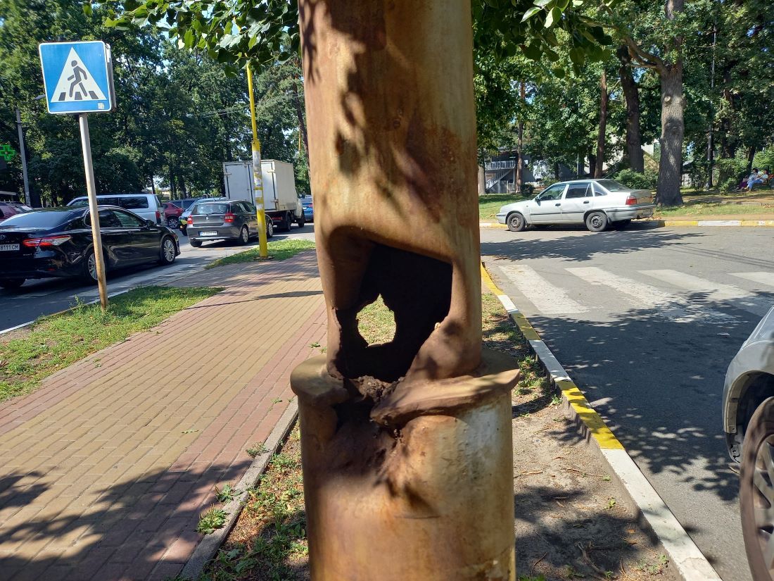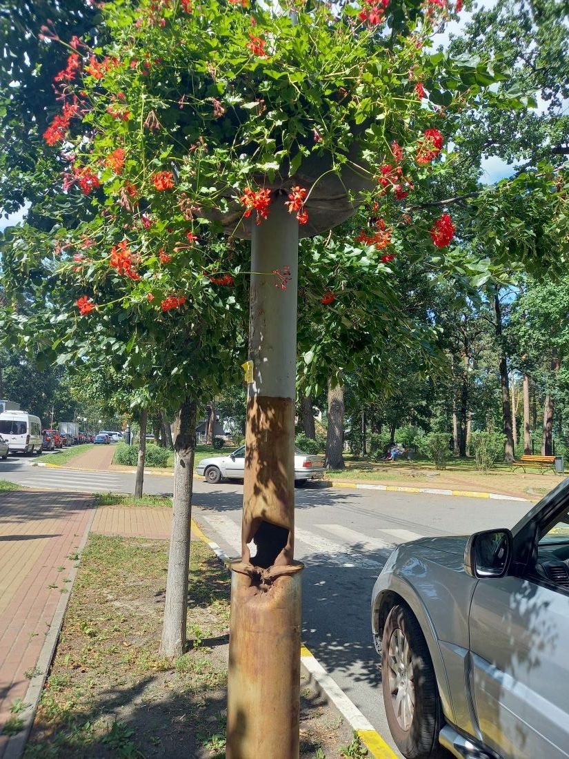 Качваме се в колата и едва тогава го виждам. Уличния стълб, до който сме спрели. От горната му част красиви червени цветя лениво се свеждат към средата на стълба, където зее огромна дупка от снаряд.