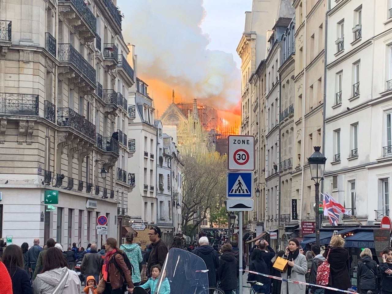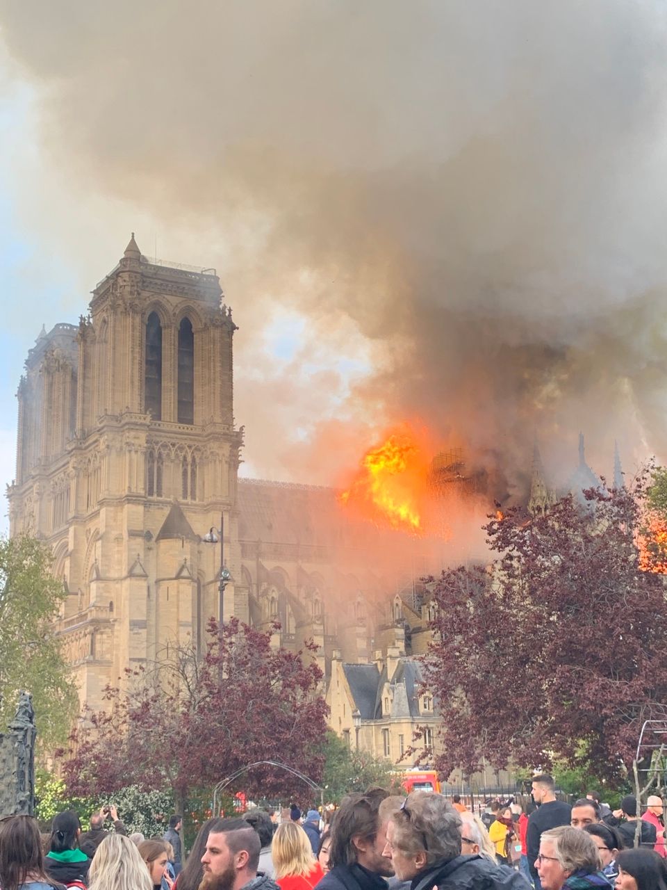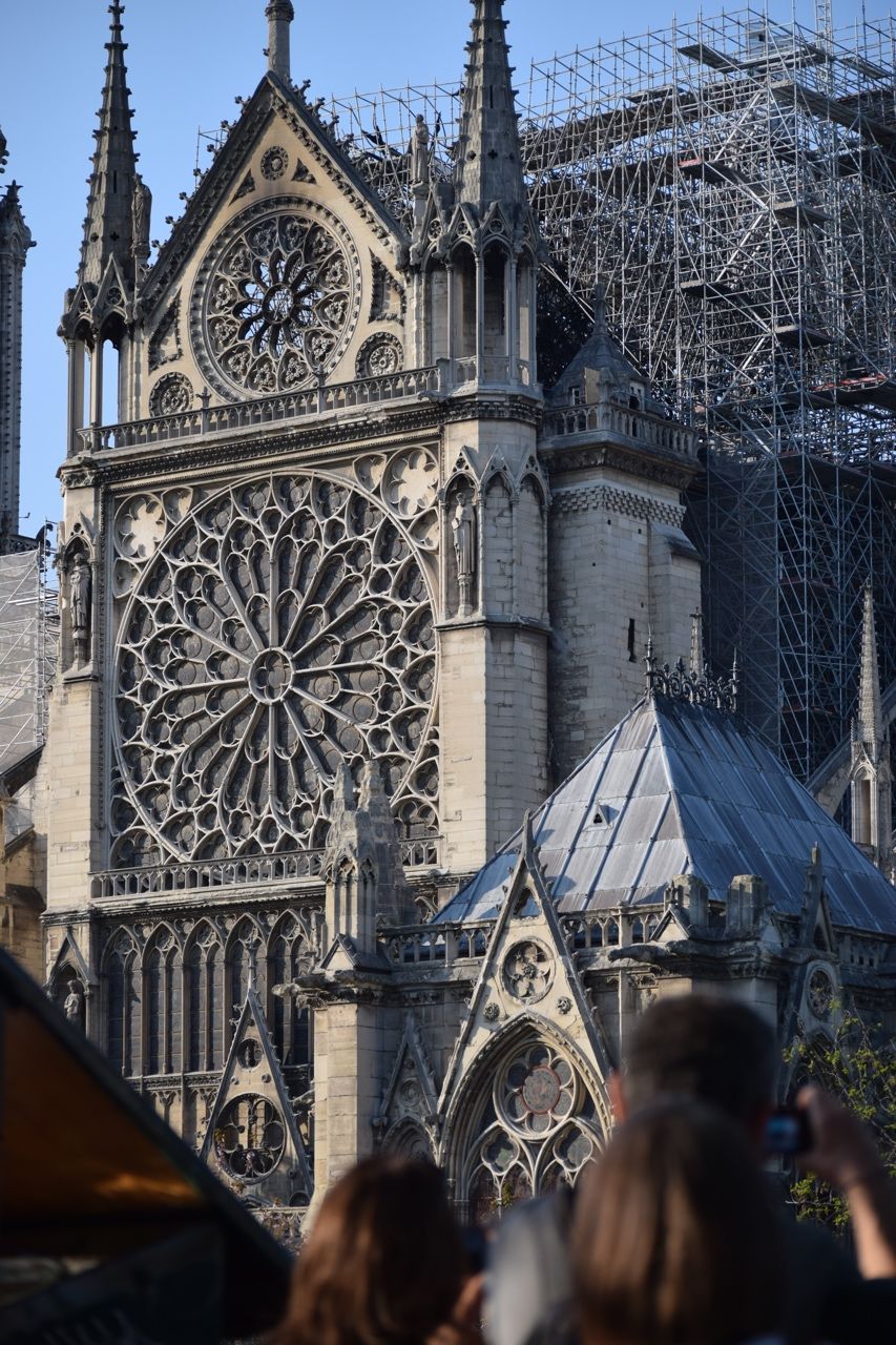 В продължение на няколко часа в понеделник вечер бе неясно дали всичко това изобщо ще бъде спасено. Две трети от покрива бе унищожен; шпилът, или кулата стрела, се срути; димът покри цялата столица. Огънят погълна т.нар. гора, както е известна покривната конструкция, датираща от 1220 г. – 1300 дъбови греди, всяка от които изработена от цяло дърво. За щастие, розетата е оцеляла в пожара.
