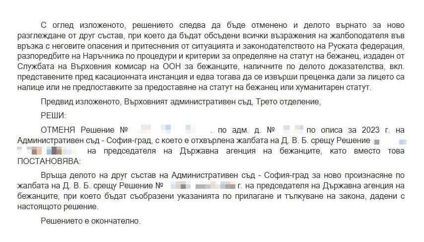 На 20 юни 2024 г., Световният ден на бежанците, Върховният административен съд връща делото на Данила в Административен съд – София-град за преразглеждане на случая, тъй като има нови обстоятелства, които могат да се добавят към делото. Данила ми показва в телефона си как, след като идва в България, Генералната прокуратура на Руската федерация е блокирала в социалните мрежи неговите постове, които са против войната и режима на Путин. Други нови обстоятелства по делото са, че Данила е протестирал пред Руското посолство в България и е един от хората, които организират секция в подкрепа на опозиционния кандидат за президент в Русия Борис Надеждин по време на президентските избори там.