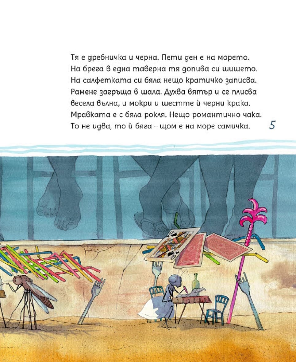 Впрочем това е особено при „Писмото на мравката“: тук в центъра е именно писането, писмото, и неговото пътешествие (и притеснение) е самата ос на сюжета. Писмото хвърля и елегантен мост към писмата у Валери Петров, с чийто звънък стих – и абсолютно спокойствие да говори за доброто – Мария Донева звучи вътрешно свързана.