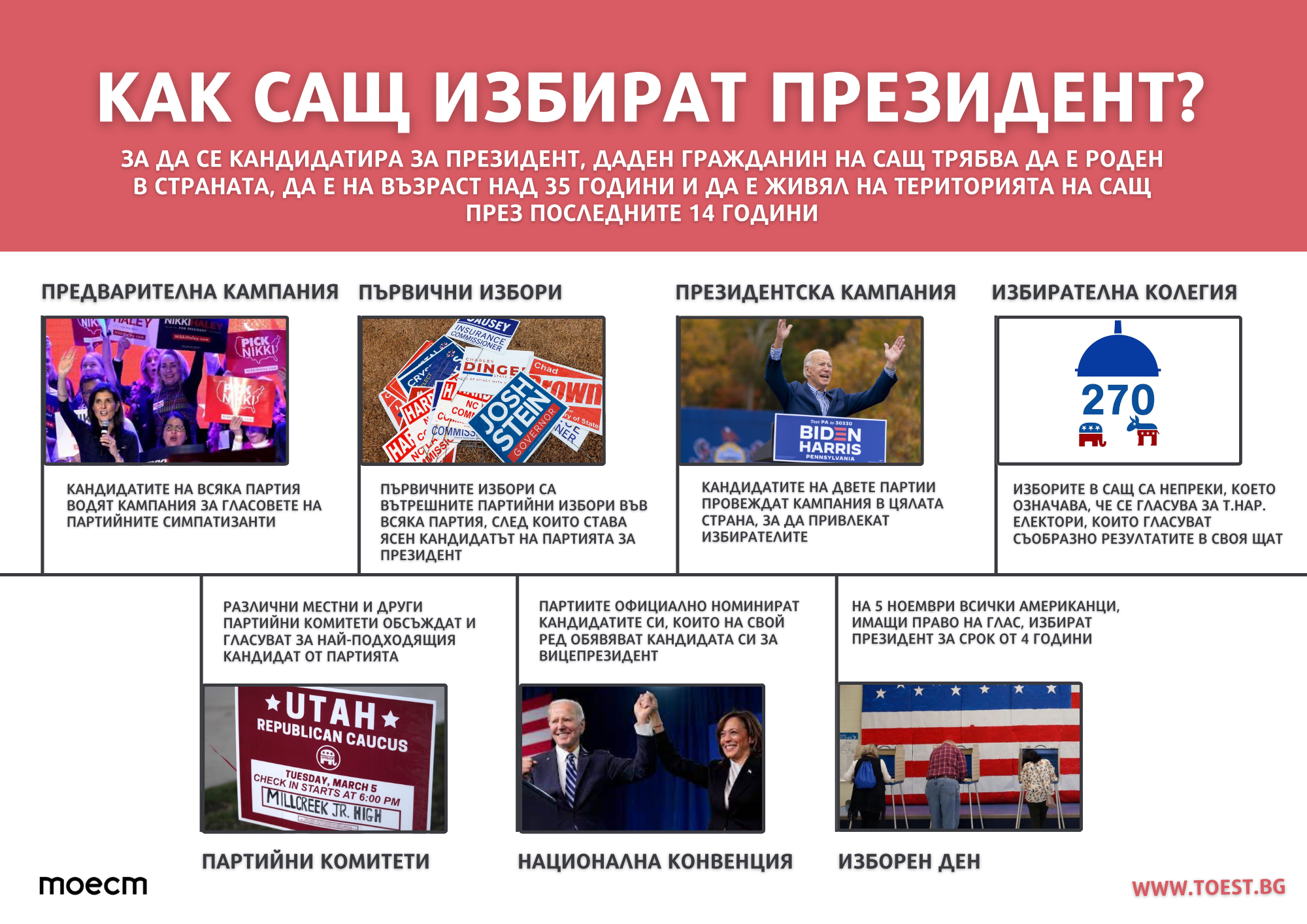 САЩ е ключов партньор на България, световна сила и основна страна във все по-горещ военен конфликт, така че предстоящите през ноември президентски избори разбираемо вълнуват не само българите, но и света. Същевременно от САЩ ни дели цял океан, а дигиталната близост до американския свят е илюзорна: за много европейци например изборният процес в Америка е тъмна материя. У нас американската политика често се разглежда или през кратки новини и очерци, или през превратното тълкуване на източници на дезинформация – като тези, които по-рано през годината обявиха началото на гражданска война в САЩ, която така и не се състоя.
