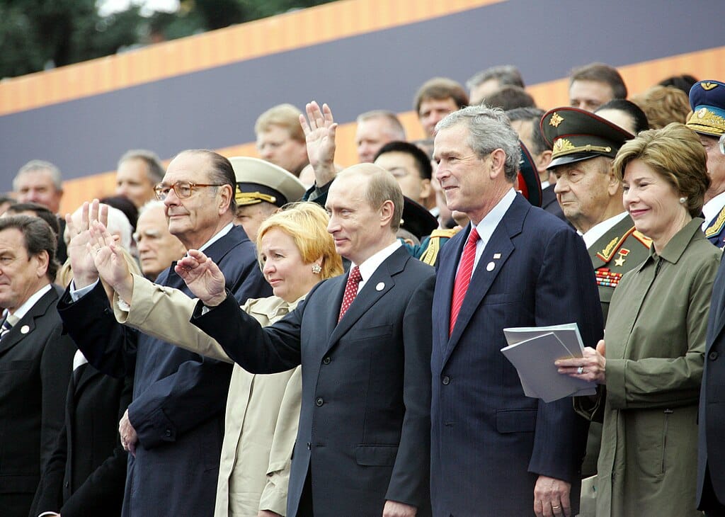 Втората стратегическа грешка дойде с доктрината на Буш-младши, която проповядваше, че всяка нация трябва да избере на чия страна да застане – на САЩ или на терористите. Това автоматично легитимира стремежите на Русия да се завърне на глобалната сцена, този път „преоблечена“ като американски съюзник срещу талибаните. В този дух беше и първият президентски мандат на Владимир Путин, който беше описван на Запад като „модерния“, „новия“ руски политик, загърбил спомените от Студената война в името на глобалната война срещу терора, и до когото Буш застана редом, за да уважи военния парад на Червения площад през 2005 г.