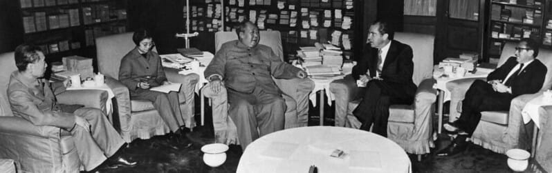 След Втората световна война политиката на отворени врати към Китай е преустановена, тъй като на власт в Пекин идва Мао Дзъдун, който изпраща свои войски срещу американската помощ за Южна Корея по време на Корейската война. Тези антагонистични отношения обаче не траят дълго. През 1972 г. президентът Ричард Никсън и неговият съветник по национална сигурност Хенри Кисинджър решават да започнат сближаване с Китай, което Кисинджър дефинира като триъгълна дипломация, имаща за цел да сдържа СССР и да помогне на Вашингтон да разцепи социалистическия лагер. Успехът на тази доктрина до голяма степен гарантира победата на САЩ в Студената война, защото на Москва ѝ се налага да „воюва“ не срещу един, а срещу два противника.
