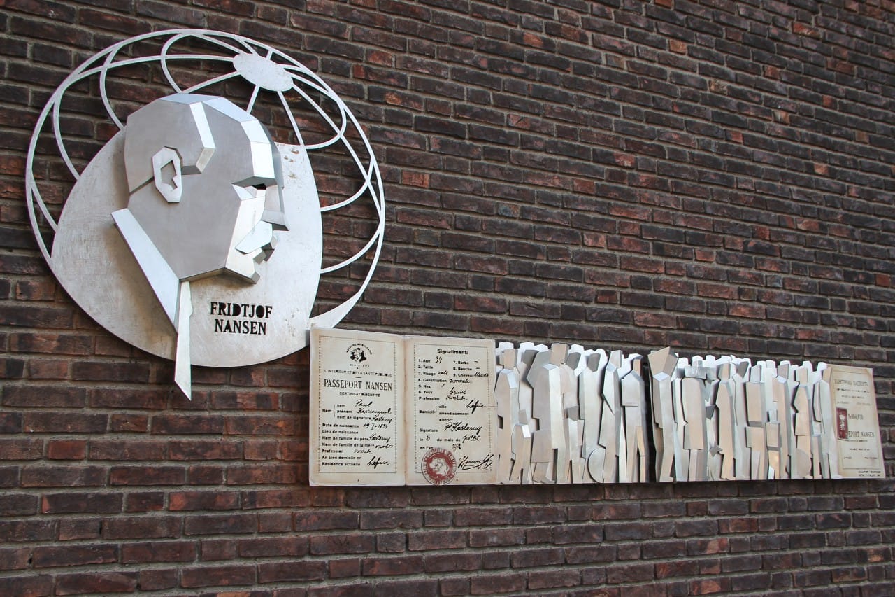 Монумент в чест на Нансеновия паспорт в кметството на Осло, Норвегия. Изложен е българският вариант на паспорта © Светла Стоянова