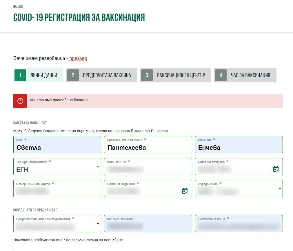А знаем, че се случва и държавни сайтове, съдържащи лични данни на милиони граждани, да бъдат хаквани. Впрочем новият портал на МЗ предоставя поне една възможност да се получи лична информация за вас и без хакване. Когато се регистрирате онлайн за ваксиниране срещу COVID-19, от вас се иска да попълните данните от личната си карта и координати за връзка. Ако вече сте се ваксинирали, системата показва това, без да изисква друг метод на верификация, като електронен подпис или потвърждение чрез есемес или имейл.