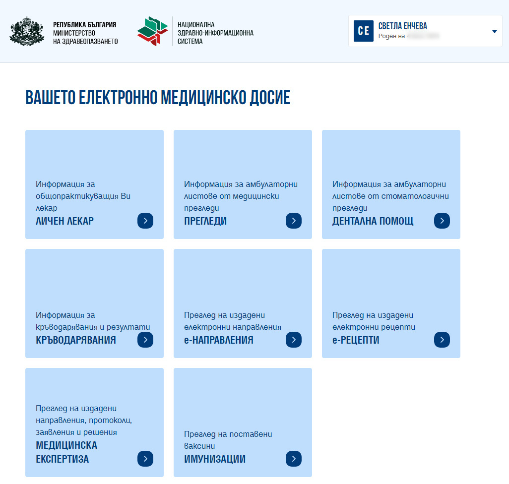 В частта „Медицинска експертиза“, която за мен стои празна, би трябвало да има информация за направления, протоколи от лекарски комисии, заявления за освидетелстване и експертни решения. Има и раздел за кръводарявания, в който, ако сте били кръводарители, се съхранява информация