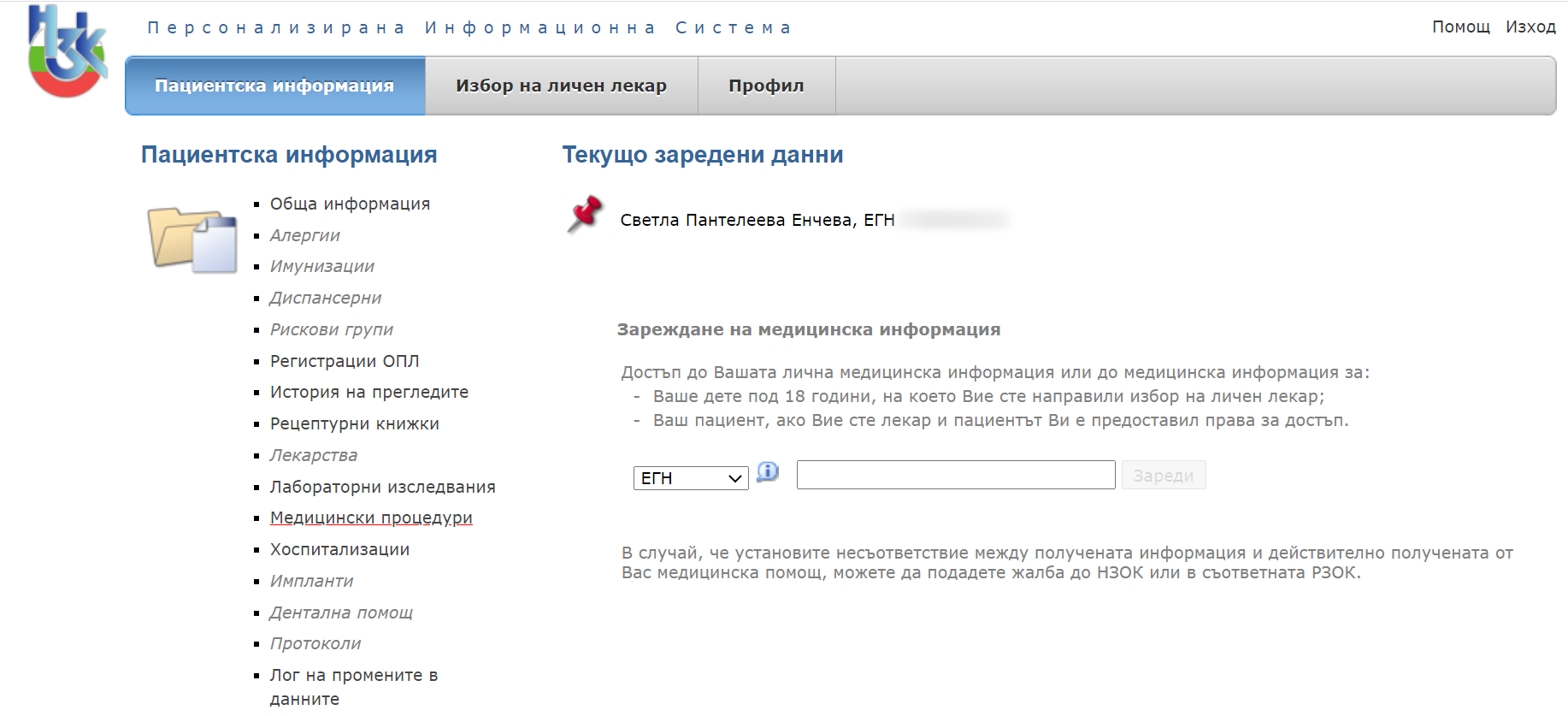 Сайтът на НЗОК помни и кои са били всичките ми лични лекари през годините, дали съм имала рецептурна книжка и каква диагноза пише в нея, какви прегледи и лабораторни изследвания съм си правила (онези от тях, които са по Здравната каса), кога и защо съм лежала в болница. Разделът „Медицински процедури“ включва прегледите, които са ми правени – но само част от тях, подбрани по неясен за мен признак. В раздела за ваксините не е отчетено, че съм с първа доза против COVID-19.
