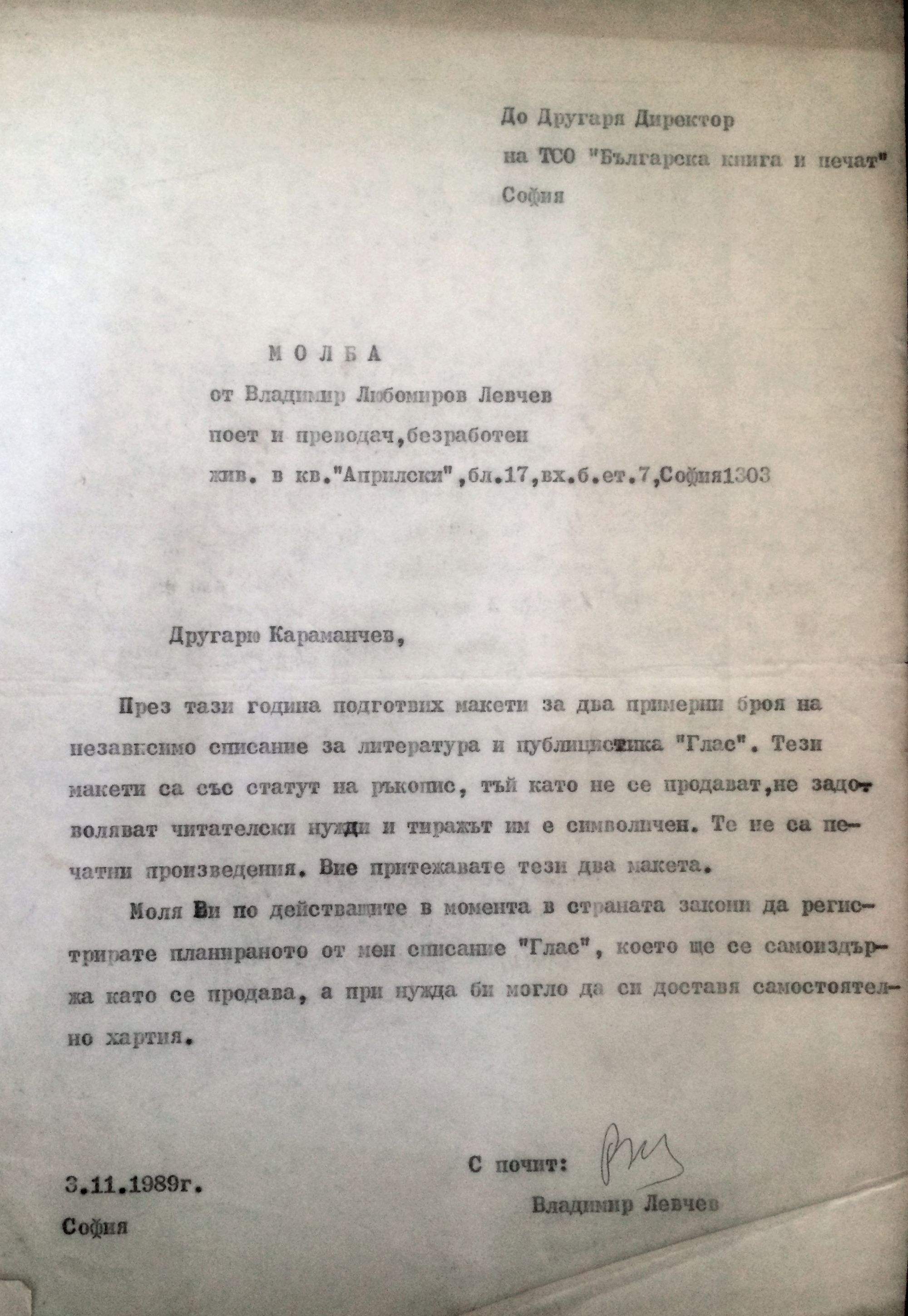 Цялата авантюра с издаването на „Глас“ и „Мост“ води до уволнението на двама от преките участници. Първият е издателят Владимир Левчев. Уж син на могъща фигура в комунистическата партия (поета Любомир Левчев, председател на Съюза на българските писатели до пролетта на 1989 г.), пък го уволнили от издателството, в което работел – „Народна култура“.