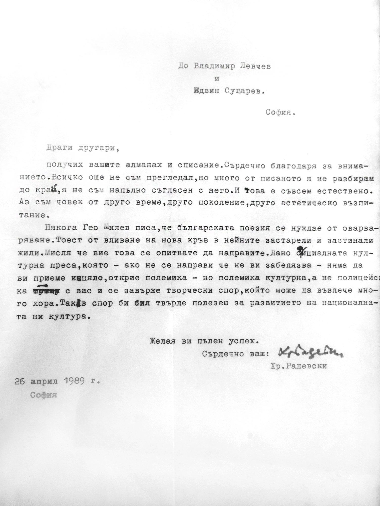 Но най-важното, разбира се, си остава текстът – знакът, че поезията може да бъде и на барикадите, както пише Едвин Сугарев в първия брой на „Мост“. Знак и за това, че българската комунистическа пустиня започва да се движи, както пише в първия брой на „Глас“ Владимир Левчев.