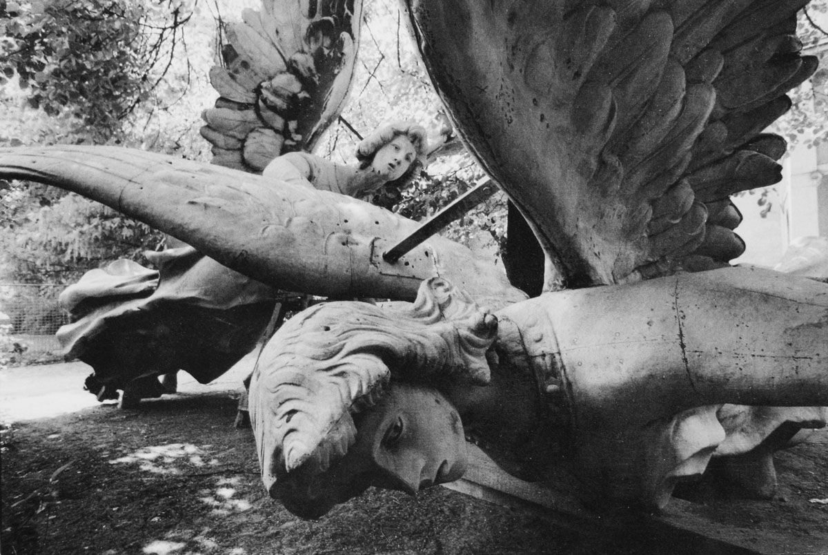 Обективът на фотографката Сибиле Бергеман, насочен към същия този паметник, привидно разказва историята на творческия процес.