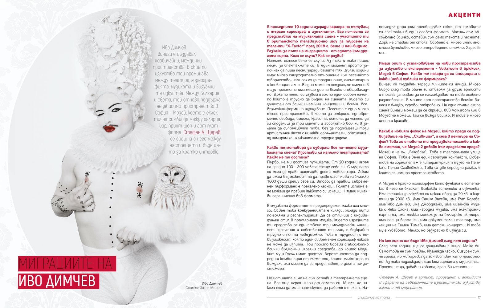 Излезе вторият брой на „Списание за танц“ – годишно издание за балет, съвременен танц и пърформанс и танцова култура, публикувано от Фондация „Брейн Стор Проджект“ и Сдружение „Номад Денс Академи България“. Списанието е инициирано от фестивала „Антистатик“. Негов главен редактор е Ангелина Георгиева. Освен с нея, Марин Бодаков разговаря и с двама от редакционния съвет на списанието – Стефан А. Щерев и Ива Свещарова, а при последния въпрос се включва и Ина Дублекова, която отговаря за комуникацията на начинанието.