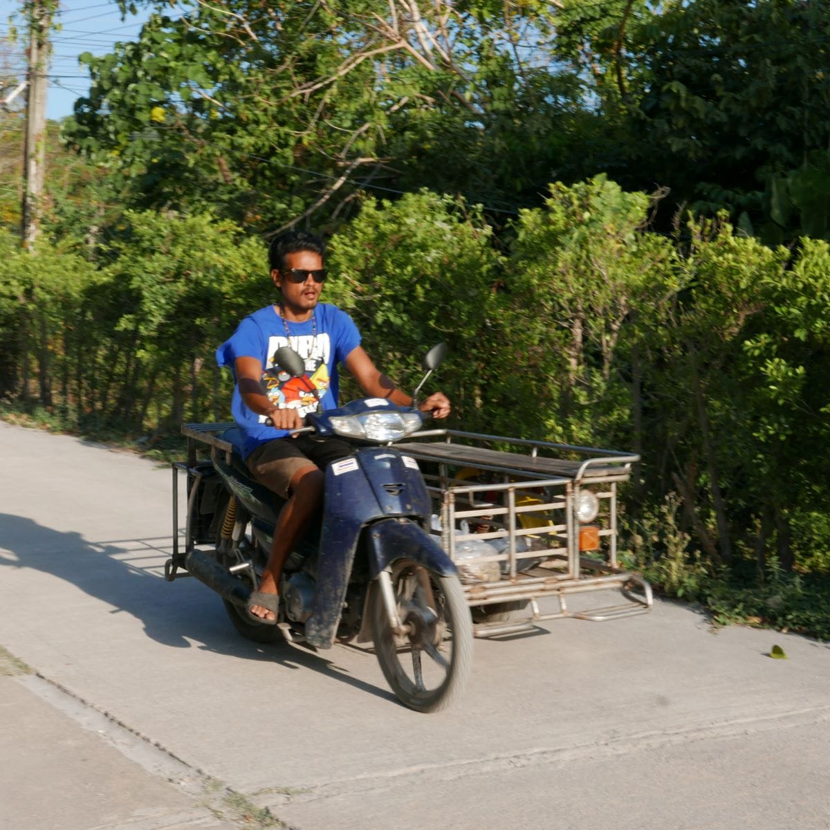 Друго, което тайландците продават навсякъде, е бензин в бутилки от ром. Така по всяко време може да заредиш японския си (като марка) скутер, произведен в Тайланд и нает за 150 бата на ден (около 7,50 лв.). Както в повечето азиатски страни, и тук скутерите масово се използват за придвижване дори в големите градове, в които разстоянията са изтощителни.