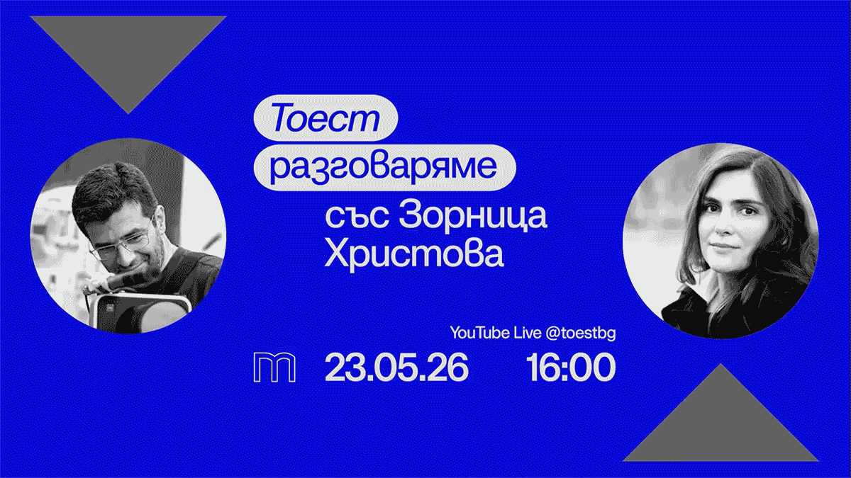 Последният (засега) епизод на „Тоест разговаряме“ ще бъде със Зорница Христова – преводачка от английски, издателка, авторка на детски книги и водеща на книжната ни рубрика „По буквите“. Разговорът ще се излъчи на живо в YouTube Live на 23 май, събота, от 16:00 ч.